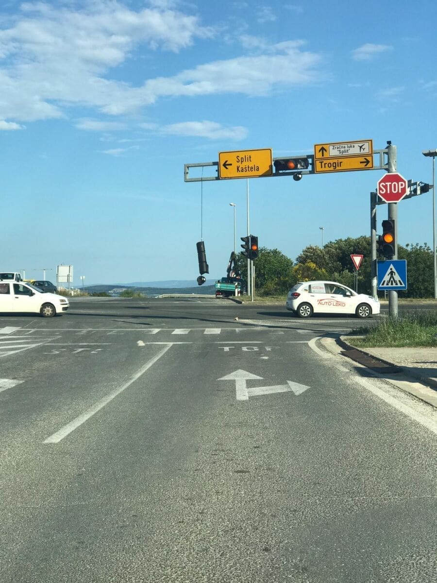 U kasnim poslijepodnevnim satima na raskrižju u Planome kod Trogira dogodila se bizarna prometna nesreća. Prema dojavi čitatelja, kamion s podignutom dizalicom oštetio je semafor.