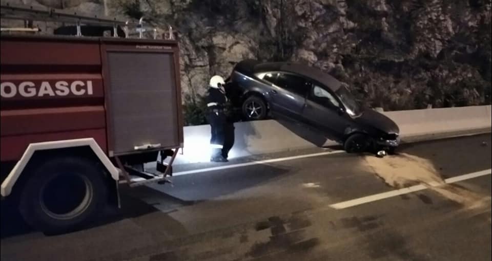 Kako doznajemo, automobil marke Passat, vjerojatno uslijed neprilagođene brzine, izgubio je kontrolu nad vozilom te je udario u zaštitnu betonsku ogradu te je stražnjim dijelom automobila završio na gornjem dijelu betonske ograde.