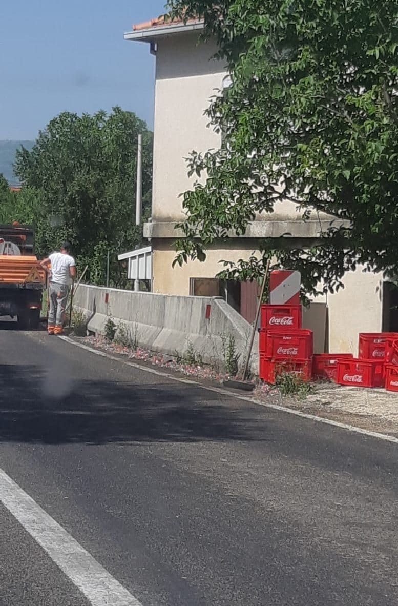 Kako nam javljaju čitatelji iz Hrvaca, po cesti su se rasule boce Coca-Cole.