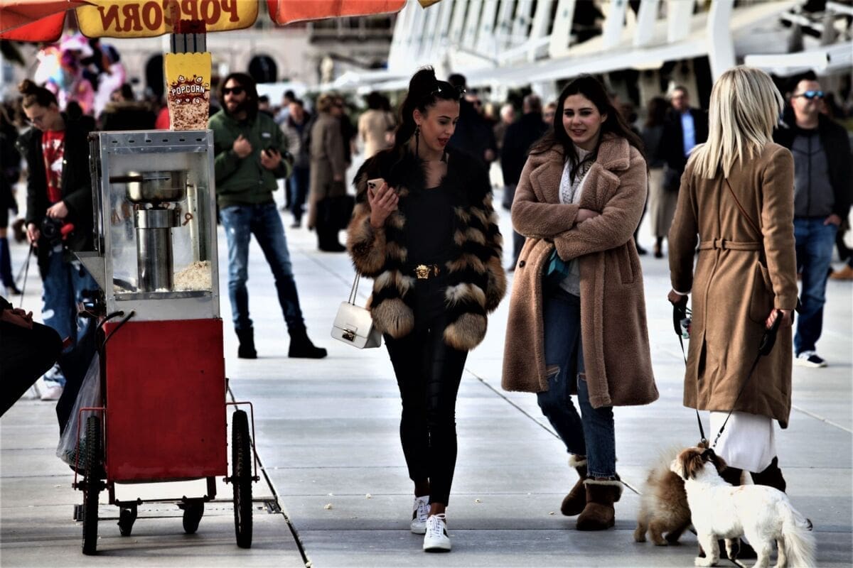 Samo oni rijetki su se za šetnju odlučili srediti u blagdanskom duhu pa tako Rivu ove godine nisu preplavili božićni džemperi i tipične blagdanske boje - crvena i zelena.