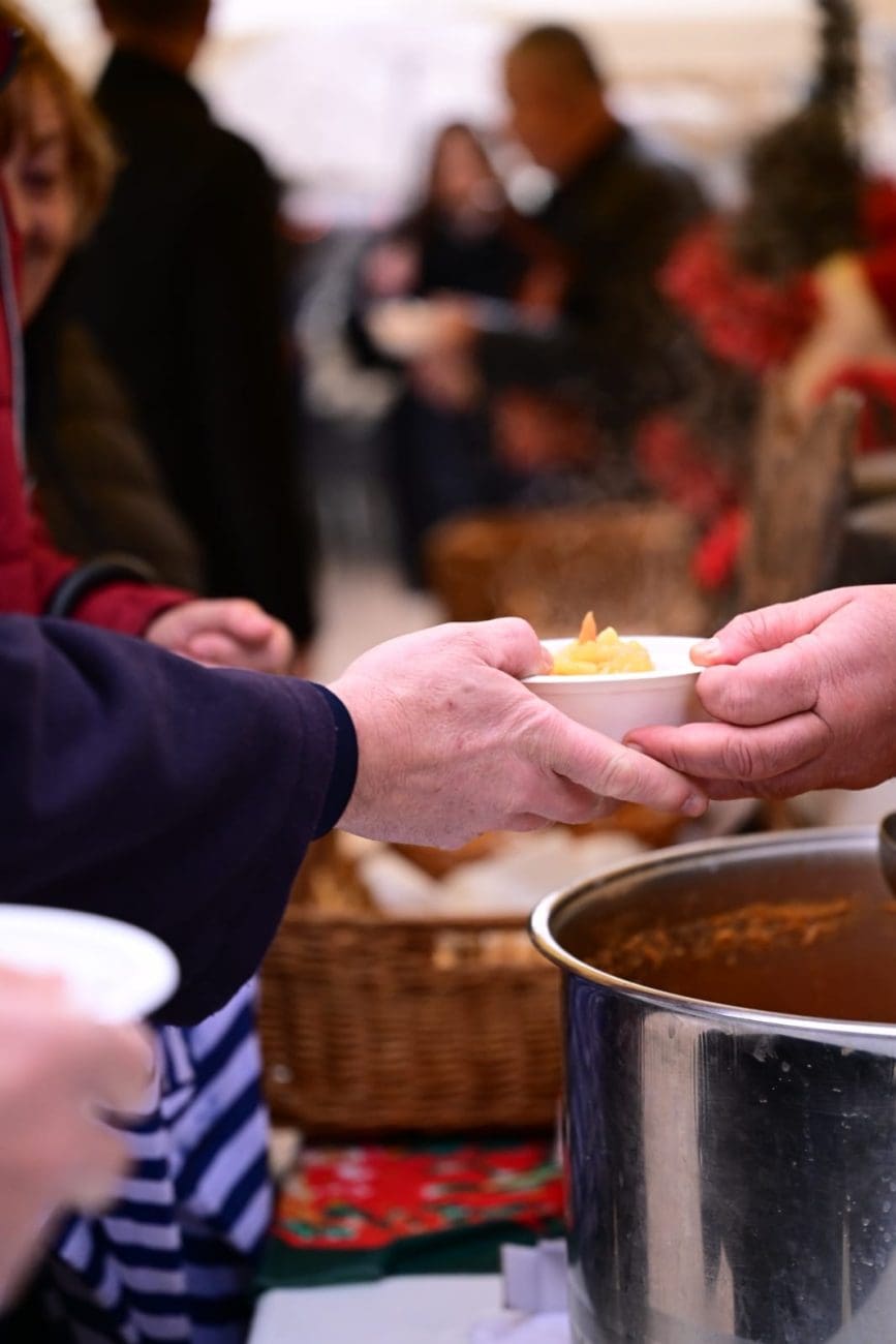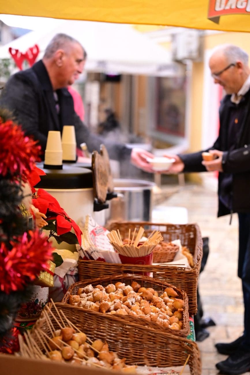 Na stolu se moglo naći bakalara, blagdanskih kolača, sinjskih uštipaka, fritula, suhog i svježeg voća, vina, pića i piva Sinjske pivovare.