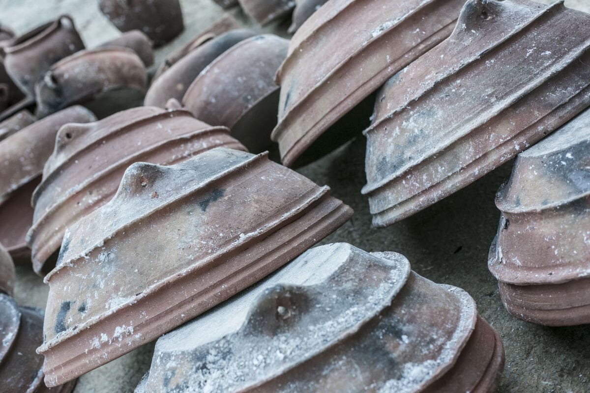 To je bilo vrijeme kad su se u domaćinstvu upotrebljavale razne zemljane posude, lonci, bakre za kuhanje mlijeka ili za pripremanje pure - rijetke kukuruzne palente, ćupovi za držanje masla i kiseloga mlijeka, lonci za čuvanje vina, žita, škaldini - posude za nošenje žara, peke, cripnje - zvonoliki poklopci kojima se pokrivalo tijesto za pogaču ili neko drugo jelo na otvorenom ognjištu, pjati - tanjuri za serviranje jela, zdile (plitke zdjele), ruketnjaci (vrčevi za piće), muzine (male štedne kasice)... Svaka je posuda imala naziv prema namjeni (bakra mlikarica, purarica, dubočica, bandeua ... ). Danas se uz neke tradicijske posude izrađuju i one novih oblika i namjene, npr. amfore (za turističku prodaju), lonci za cvijeće – pitari te razni minijaturni oblici tradicijskoga posuđa koji se nude kao suveniri.