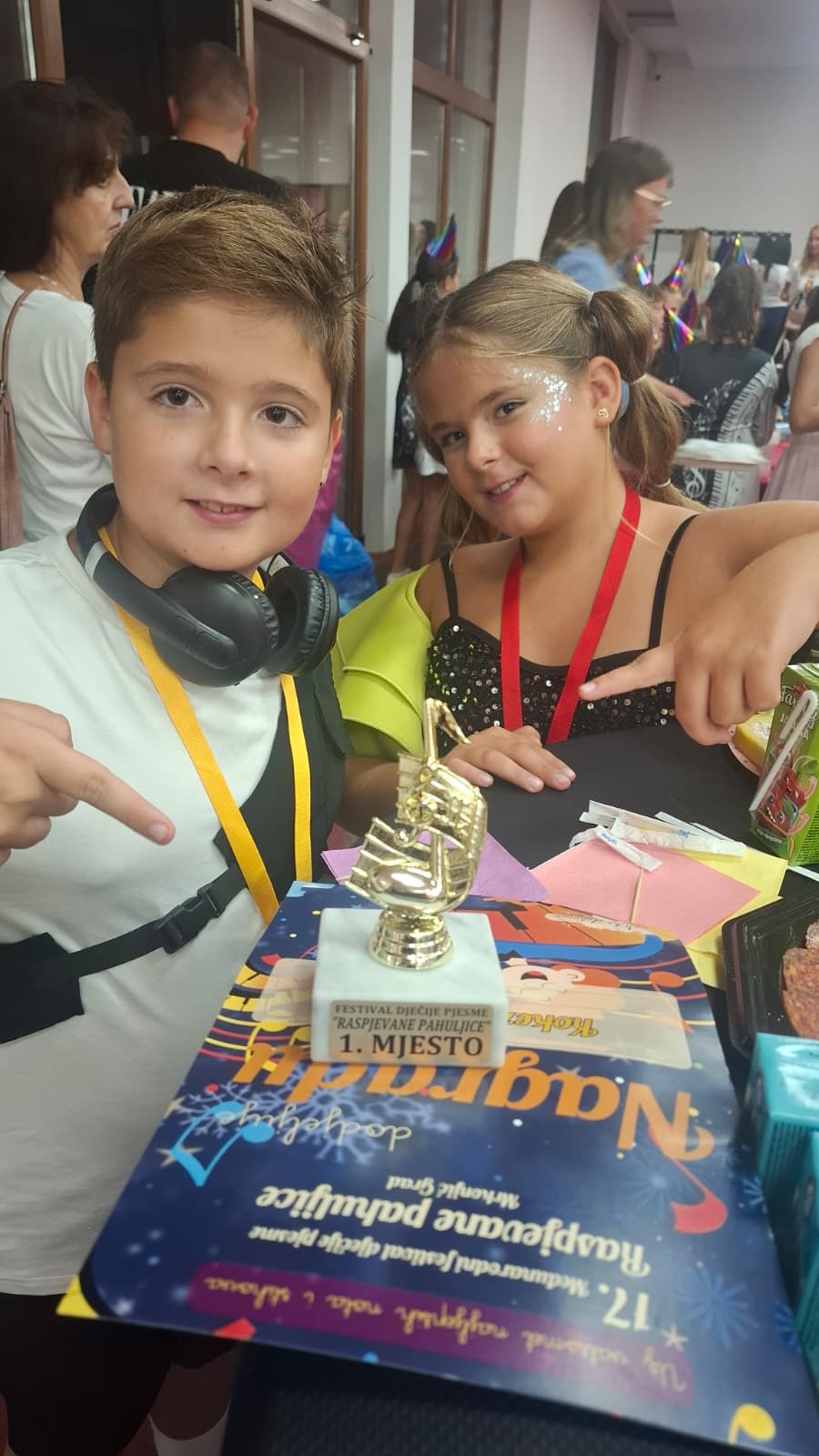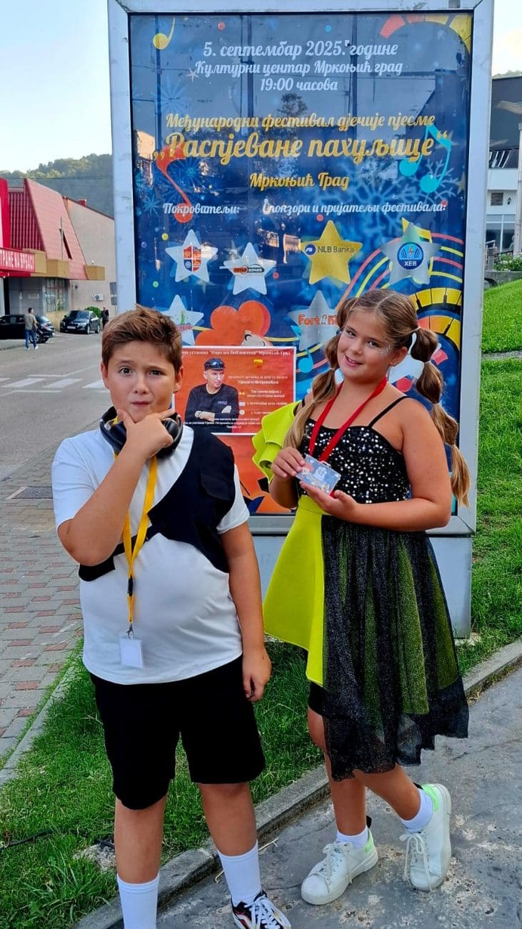 Djevojačica iz Splita Maris Kokeza i njezin brat blizanac Arsen, desetogodišnjaci, oduševili su publiku i žiri na Festivalu dječje pjesme 'Raspjevane pahuljice' održanom u Mrkonjić Gradu, osvojivši prvo mjesto.