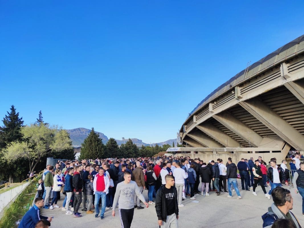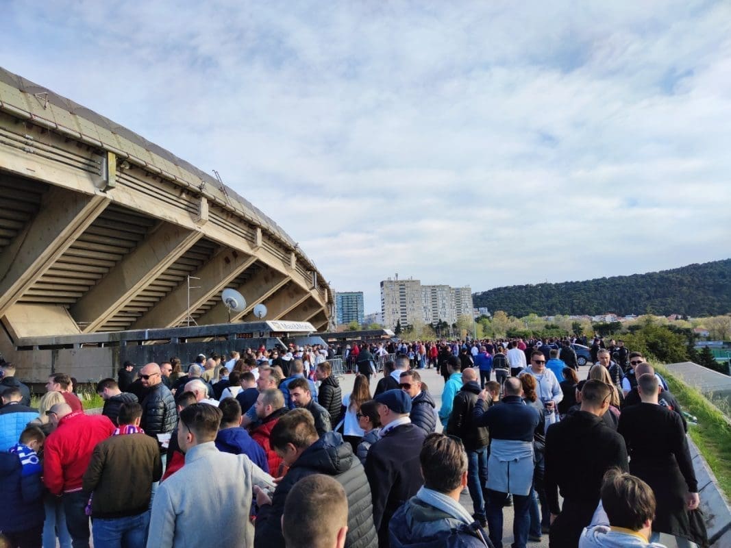 Suparnik je Dinamo, a Poljud će biti ispunjen do posljednjeg mjesta. Dobar broj navijača je već zauzeo svoje mjesto na tribinama, a i dalje su velike gužve na putu do stadiona.