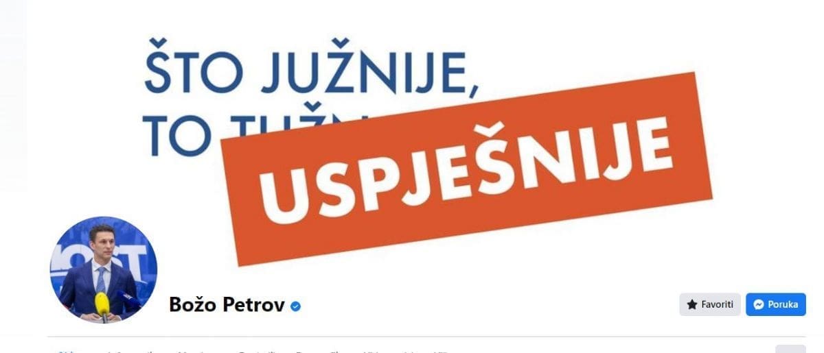 "Ne bih vam nikad komentirao da mi se ne nudite u news feedovima jer to jednostavno nije moja praksa... no htio bih vam ukazati na izrazitu grešku vaše naslovne fotografije na vašem fb profilu u kojoj dominira naslov "Što južnije, to tužnije". Naime, istoimena parola "Što južnije, to tužnije" je izvorno i originalno porijeklom iz Srbije. To vrijedi za jug Republike Srbije i to je u originalu njihova narodna izreka. Gotovo mi je nevjerojatno da ste vi kao predsjednik MOST-a uzeli za svoju fb naslovnu fotografiju jednu srbijansku narodnu parolu koja s Republikom Hrvatskom nema apsolutno, ali apsolutno nikakve veze, pogotovo s jugom Hrvatske koji je jedan od razvijenijih dijelova.