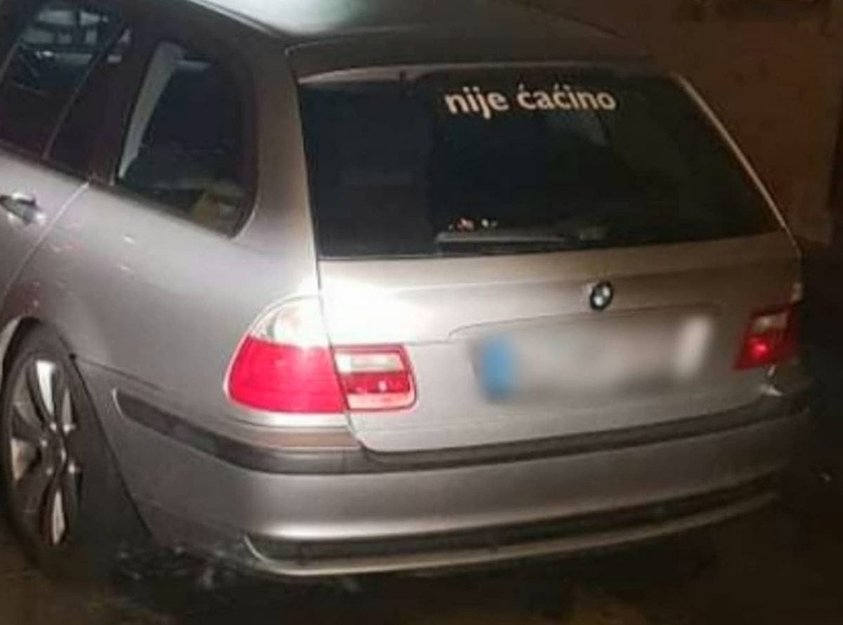 Naime, na staklu sivog BMW-a piše "Nije ćaćino".