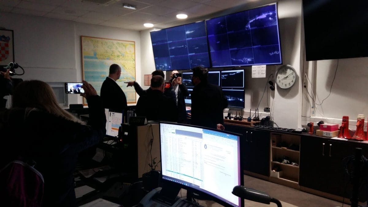 Posjetili su i Područni ured civilne zaštite Split, poznatiji kao Županijski centar 112 na Trsteniku. Županu i gradonačelniku pojasnili su kako se "višak" poziva preusmjerava na zagrebački centar 112 te da se svaki poziv snima i obradi bez obzira kako "šaljiv" bio. Govoreći o trenutnoj situaciji, Srđan Kuščević, pročelnik Područnog ureda civilna zaštite u Splitu, rekao je da je stanje prilično mirno, ali da je bila jedna potraga HGSS-a na Mosoru koja je uspješno završena bez posljedica. Tri planinara su zalutala zbog pada mraka, ali su brzo locirani. Trenutno su u Centru 112 četiri dežurna djelatnika.