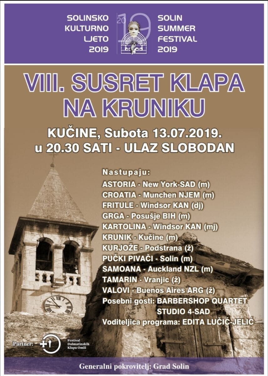 Susret klapa na Kruniku se odvija u suradnji s Festivalom dalmatinskih klapa Omiš.