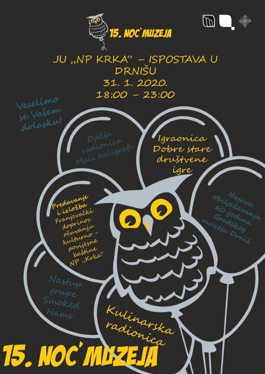 Javna ustanova „Nacionalni park Krka“ se u suradnji s kolegama iz Gradskog muzeja Drniš i ove godine pridružila obilježavanju manifestacije Noć muzeja, zabavnom i edukativnom kulturnom događaju koji će se održati u ispostavi JU „NP Krka“ u Drnišu.