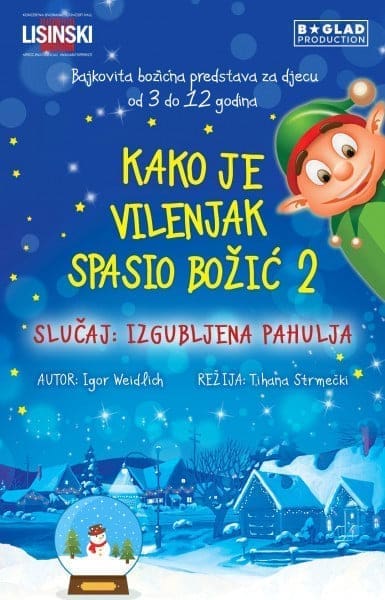 "Iako smo se premjestili u dvoranu za ove hladnije dane podjednako se trudimo upotpuniti kazališnu ponudu grada Splita. Ove jeseni posebnu smo pažnju pridali predstavama za djecu. Nakon rasprodanih dvorana za izvedbe Čarobnjakovog učenika i mjuzikla za djecu Mi o Vuku za kraj godine pripremili smo gostovanje dviju pravih poslastica za djecu. Sigurna sam kako nema djeteta koje nije čulo a i iskušalo recepte iz popularne slikovnice Vojka V "Ne može" a sad imamo čast da se splitska premijera predstave po istoimenoj slikovnici održava baš na Teatru uz more. Naravno, božićni blagdani nezamislivi su bez prave božićne predstave a za nju se pobrinula B GLAD Produkcija i KD Vatroslav Lisinski. U Split nam 11. prosinca stiže nova božićna priča "Kako je vilenjak spasio Božić 2 - Slučaj: Izgubljena pahulja". Neki od Vas možda se sjećaju i prvog nastavka koji je posljednjih nekoliko godina pogledalo na tisuće mališana a sad nam se Vilenjak vraća s novim problemom koji mu samo naš najmlađi mogu pomoći riješiti." - Anet Rožić, Teatar uz more.