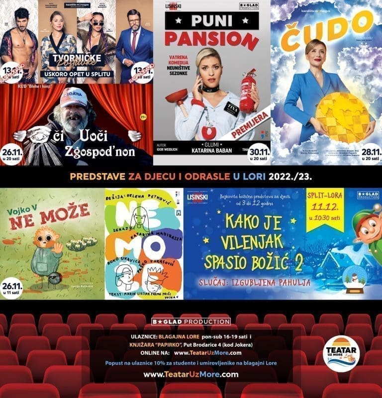 "Sigurni smo kako repertoar za kraj kalendarske godine na Teatru uz more neće razočarati ni nešto veće ljubitelje kazališta. Tu su dva već potvrđena recepta za smijeh koje smo na Vaše traženje ponovno doveli u Split - jedinstveni Ričard i "Čudo" kazališta Moruzgva. Uz njih, stiže nam i premijera komedije "Puni Pansion" B GLAD Produkcije i KD Vatroslav Lisinski koja će zasigurno svojom tematikom osvojiti posebno publiku u Dalmaciji jer mnogi bi se lako mogli poistovjetiti s našom junakinjom u turizmu." - Damir Bubalo, Teatar uz more.