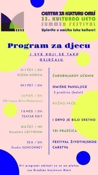 U sklopu 33.Omiškog kulturnog ljeta, u četvrtak 21. srpnja u 21 sat započeti će bogati program za svu djecu i one koji se tako osjećaju.