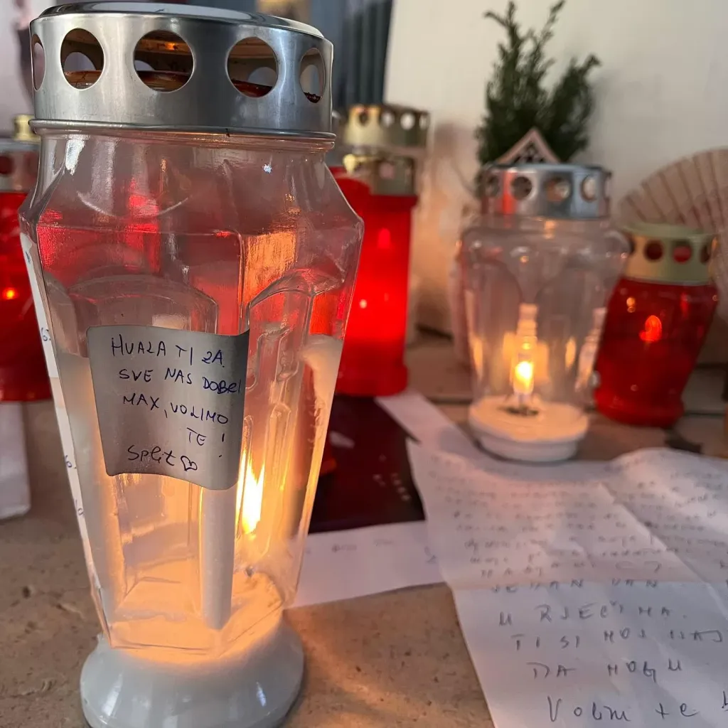 Na dan pogreba Massima Savića ispred HNK Zadar njegovi su brojni obožavatelji cvijeće, svijeće i dirljive poruke.