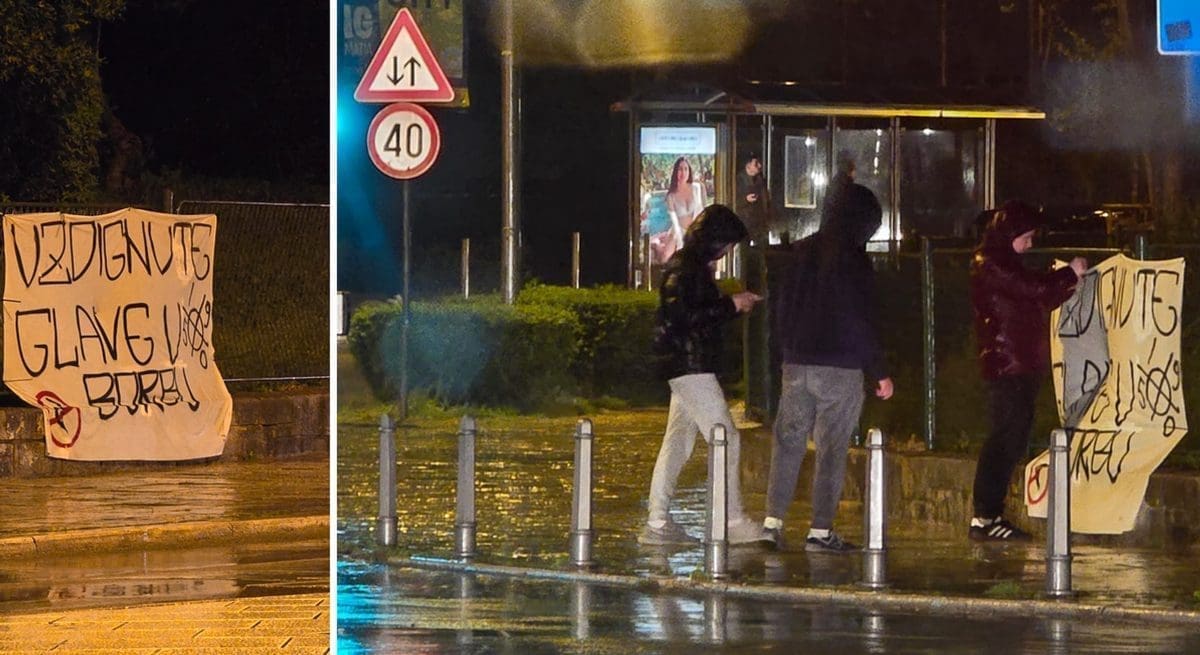Nadodajmo da su večeras po velikoj kiši nekolicina navijača Hajduka u blizini parka Emanuela Vidovića na jednoj ogradi izvjesili transparent podrške Hajduku.