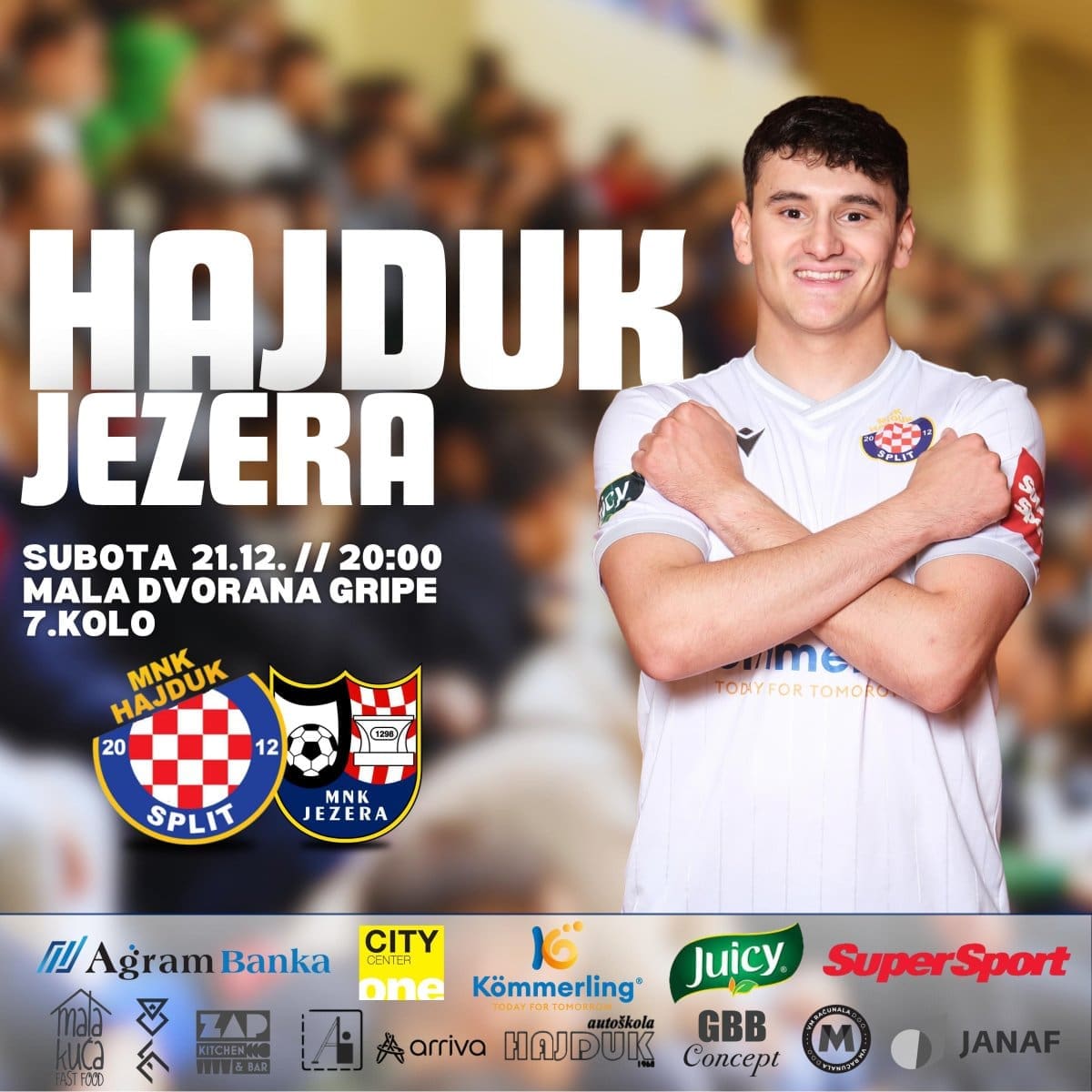 U sklopu 7. kola 1. Hrvatske malonogometne lige (1HMNL), večeras će se u maloj dvorani Gripe s početkom u 20 sati odigrati utakmica između MNK Hajduk i MNK Jezera. Ovaj susret privlači veliku pažnju ljubitelja malog nogometa jer oba kluba traže važne bodove u nastavku sezone.