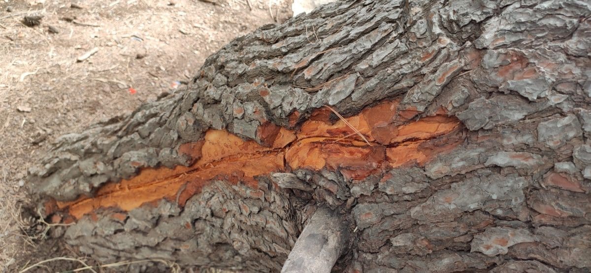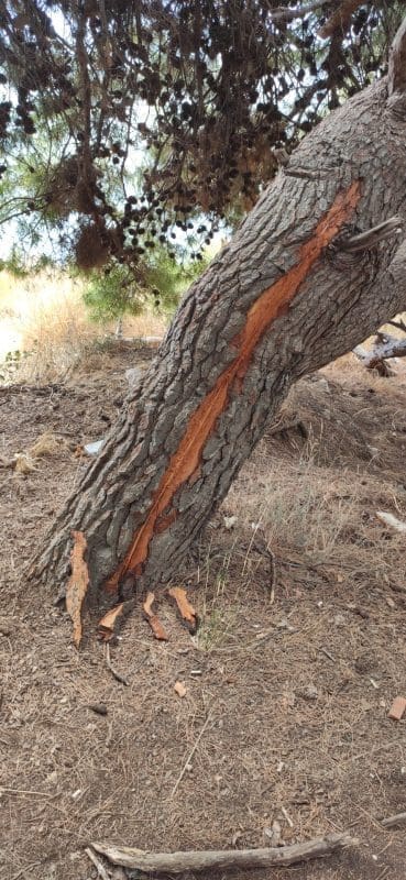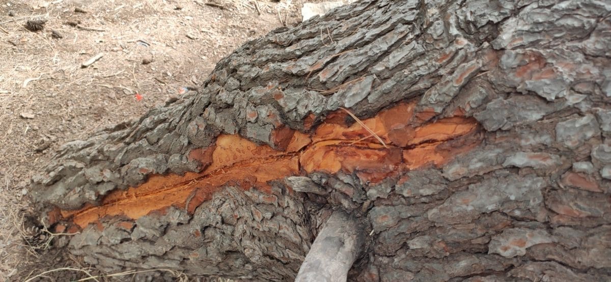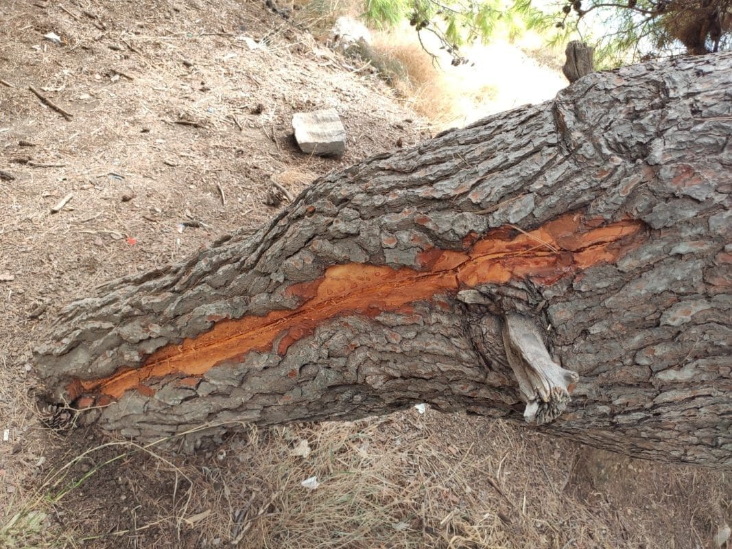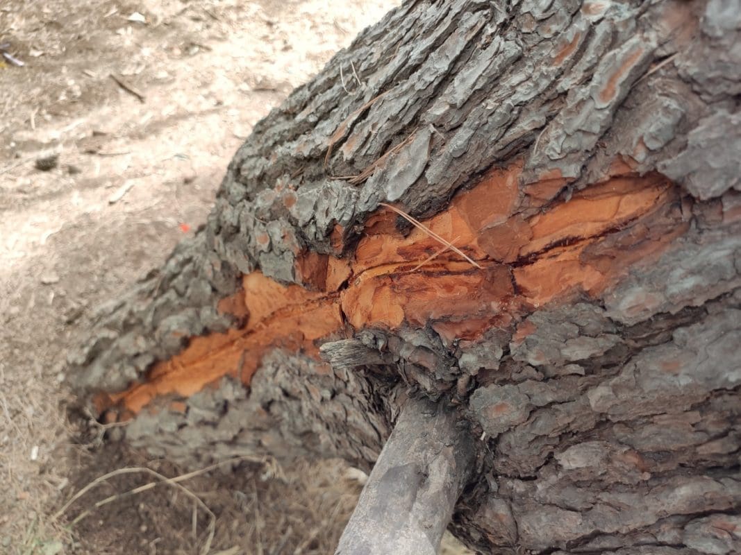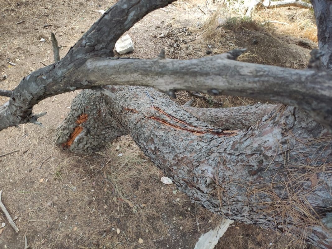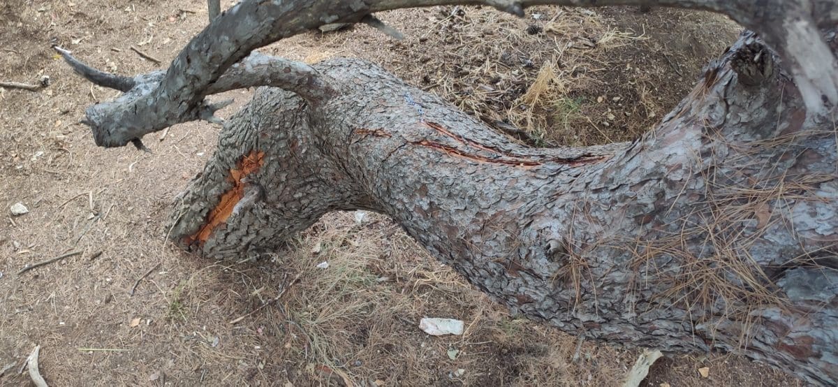 I danas se na boru ispod kojega se sklonila nesretna žena vide posljedice silovitog udara. Fotografije i video snimio je Joško Jaković.