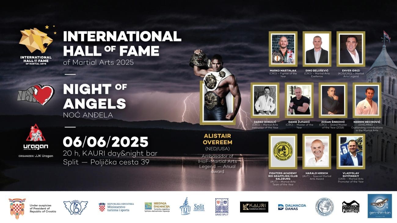 Tako će u splitskom klubu Kauri u petak 06.lipnja posebni gosti biti borilački velikani i zaslužnici koji su ispred Svjetske Genshinkan federacije i Svjetske Combat jitsu federacije te ostalih federacija izabrani za ovogodišnje laureate 12-te po redu Međunarodne Kuće slave borilačkih vještina i sportova.
