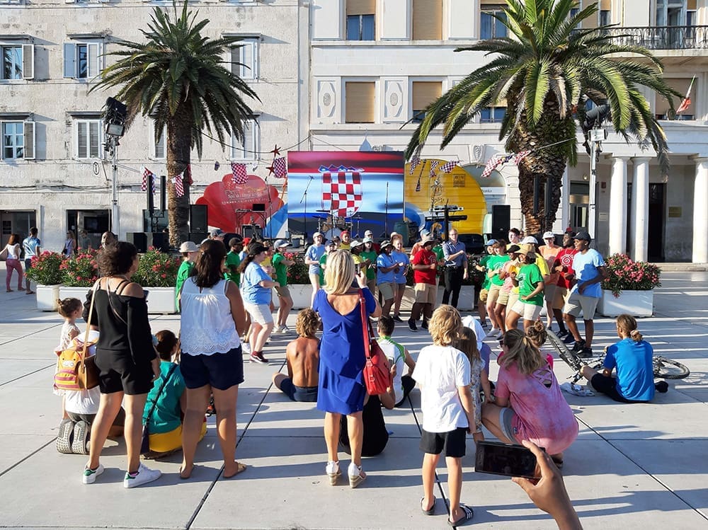 Oduševili su se povijesno kulturnim vizurama grada, a posebno ih je impresionirala najmanja crkvica na svijetu - crkvica svetog Martina u zidinama Dioklecijanove palače. Razgled su nastavili cardom do Peristila i Vestibula koji ih je oduševio svojom akustikum te su skupa s klapom zapjevali Ćiribiribela Mare moja. Nisu vjerovali da imamo i najmanju i najužu ulicu „pusti me da prođem“ čiji su naziv osobno isprobali.