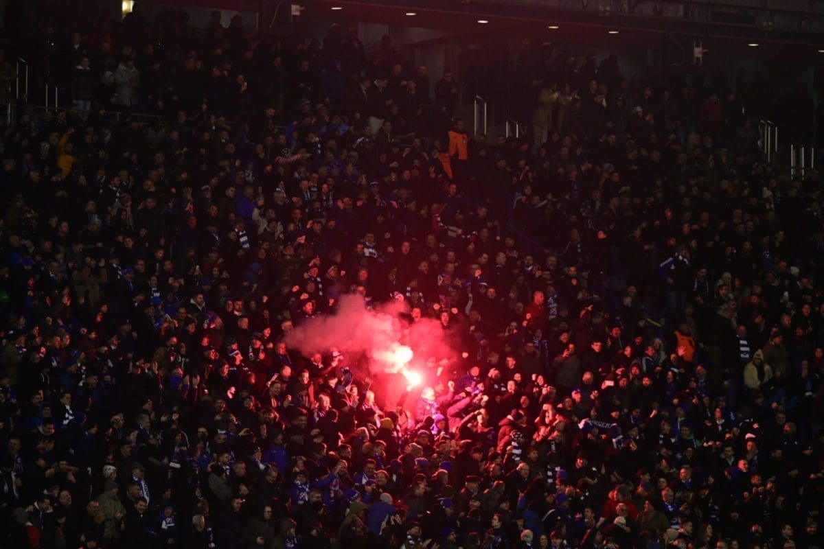 Poslije toga su krenuli trgati stolice i bacati ih van iz kaveza te su time izazvali i prekid utakmice dok vatrogasci nisu uspjeli počistiti teren i prostor oko njega od spomenutih baklji i stolica. Utakmica je nakon toga nastavljena i još uvijek je u tijeku, piše Index.