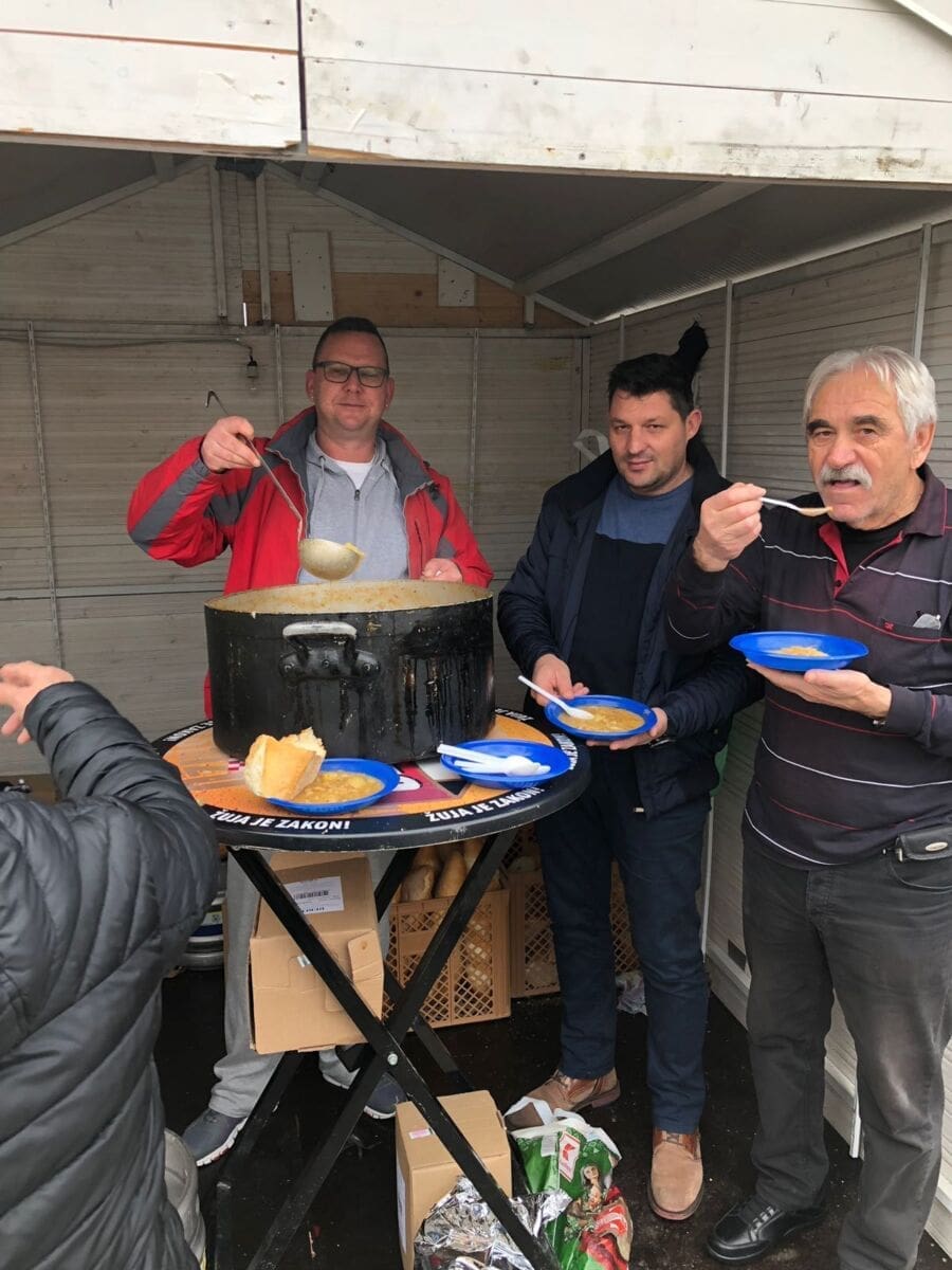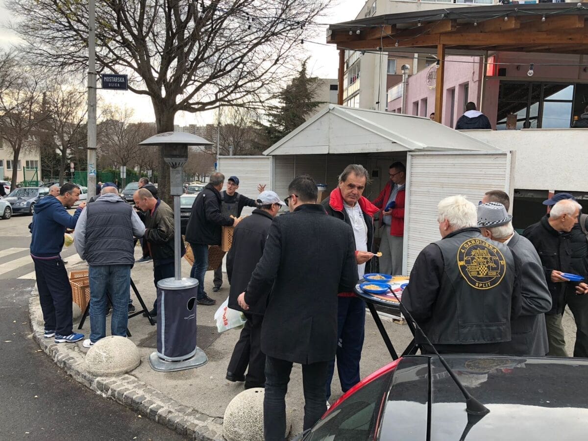 Na križanju Mostarske ulice i Puta Brda postavili su kućicu, te jučer podijelili pedesetak kilograma pečenih kobasica, a na sam Badnjak više od 200 porcija bakalara. Sve, naravno, uz dobru kapljicu i prigodnu glazbu.