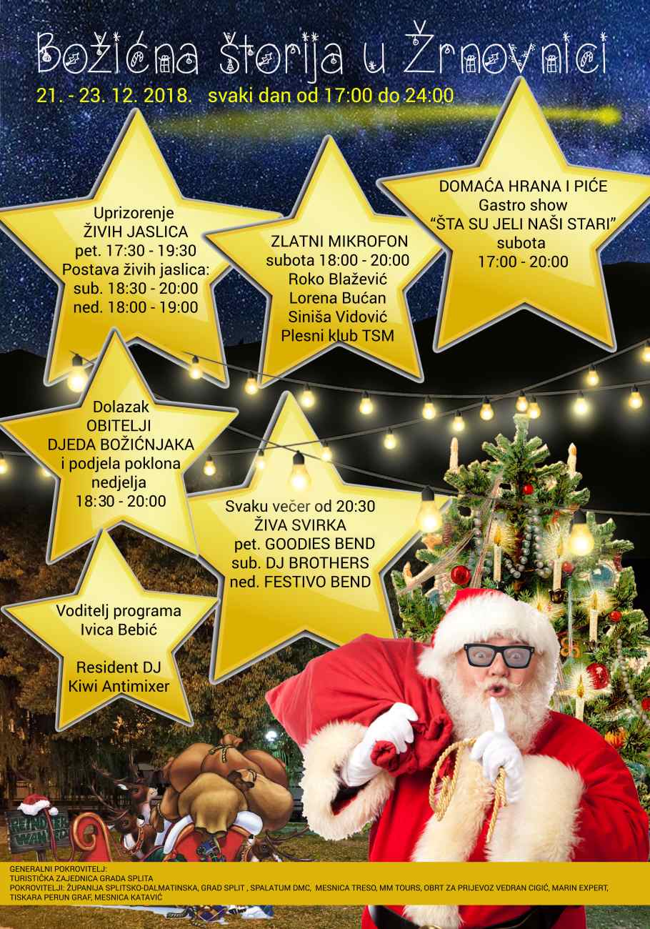 - Sve tri večeri publiku će uživo zabavljati različiti izvođači, a osobito smo ponosni na naše župljane koji će sve tri večeri uprizoriti žive jaslice. Imat ćemo žive životinje, a koje sve, neka ostane iznenađenje. U nedjelju će sigurno djecu oduševiti dolazak Djeda Božićnjaka na kočiji s pravim konjima. Podijelit će se darovi za svu djecu koja dođu, imat ćemo umjetni snijeg. Sve u svemu već sada imamo najave da će Žrnovnica sve tri večeri biti krcata, zato požurite i ne propustite biti dio najbolje osmišljenog "Adventa" na splitskom području koji će u cijelosti biti prilagođen svim generacijama - obiteljima s djecom, a u kasnijim satima mladima - zaključuje Dora Vlajić koja se zahvaljuje Mjesnom odboru Žrnovnica na pomoći oko organiziranja ovog događaja.