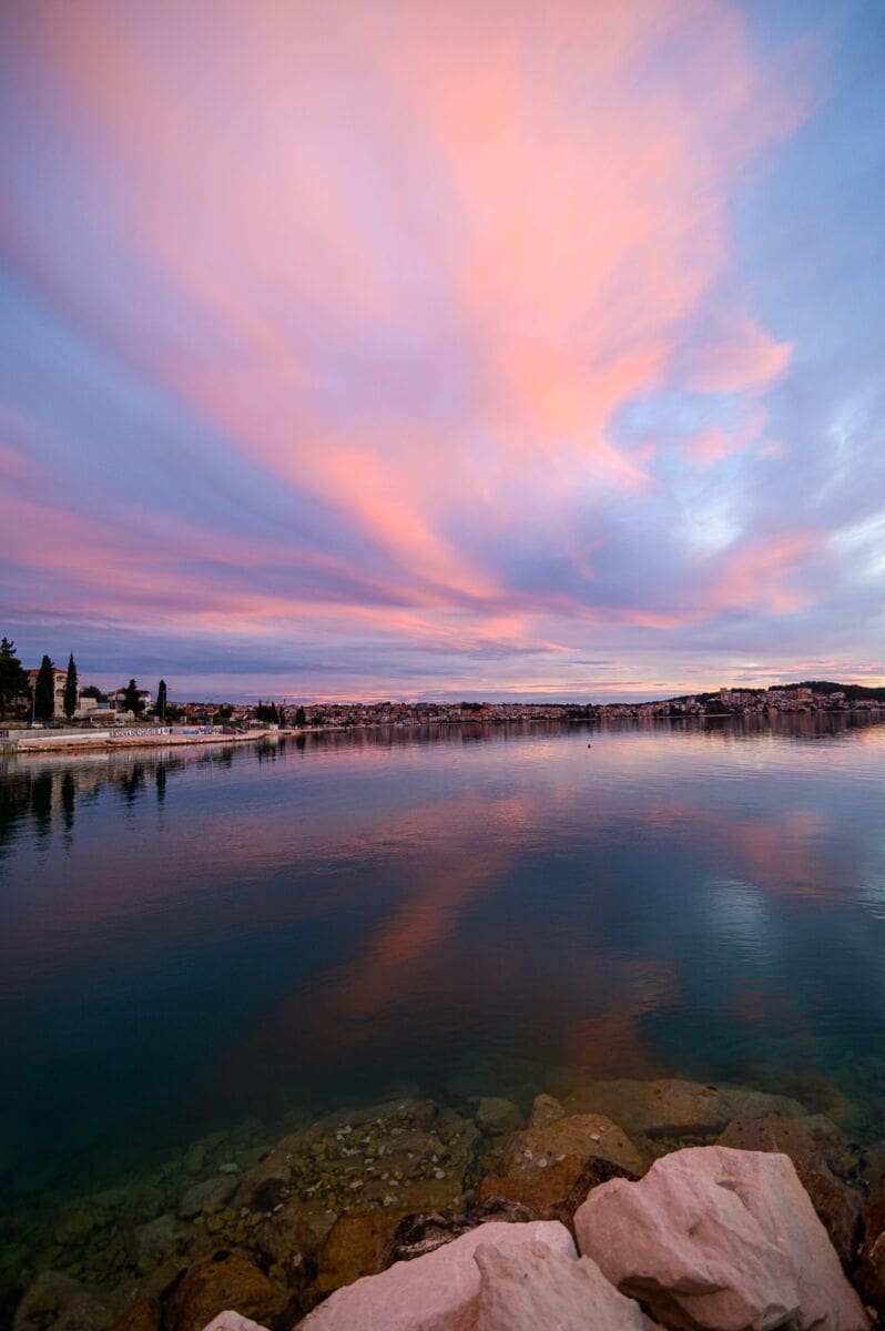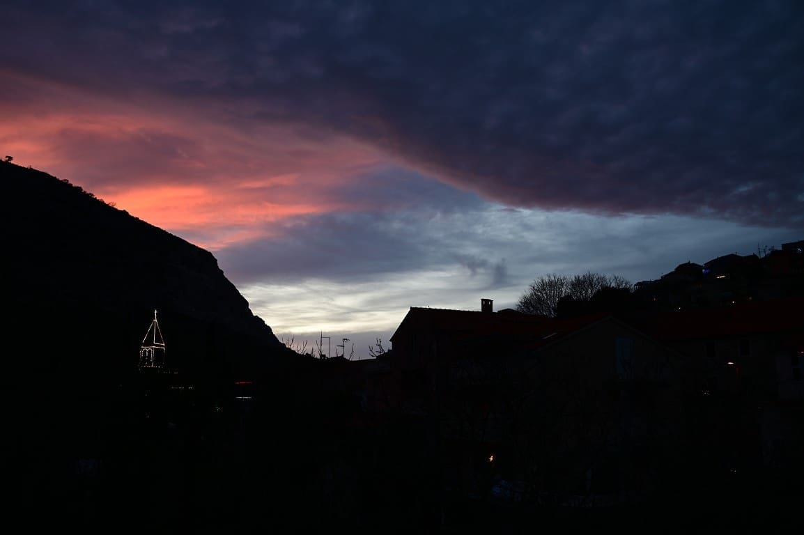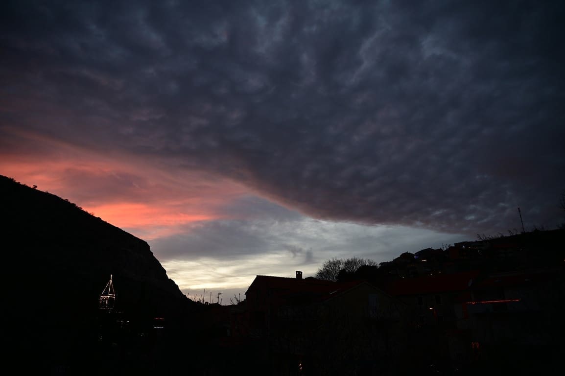 Tijekom dana jugo je prestalo, a na sjevernom Jadranu je zapuhala bura. Predvečer je naoblaka malo "napukla", što je stvorilo uvjete za lijep zalazaka sunca. Lijepe prizore od Trogira do Makarske snimili su članovi Crometeo tima...