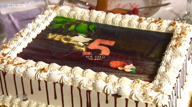 Za iznenađenje je domaćin donio diplome i učlanio goste kao počasne kuhare Grada Bjelovara, a potom je donio tortu sa slikom 'Večere za 5 na selu'. "Vidi se da je kupovna", prigovarao je Dario, a Bernardici je bila previše slatka dok je Ivan rekao: "Torta je bila impresivna! Nešto za pamćenje."