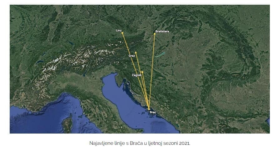 Karte na redovnoj domaćoj liniji između Zagreba i Brača u prodaji su na web stranici Croatia Airlinesa, pritom napominjemo da je otkazan let u utorak, 15. lipnja. Nadamo se kako će Brač već sljedećeg ljeta ponovno imati redovne dolaske stranih avioprijevoznika, prije svega TUI-a i LuxAira, kao što je to bio slučaj u ljeto 2019. godine, no nema sumnje da će generalna avijacija biti izrazito prisutna u ovoj hrvatskoj zračnoj luci i ovog ljeta.