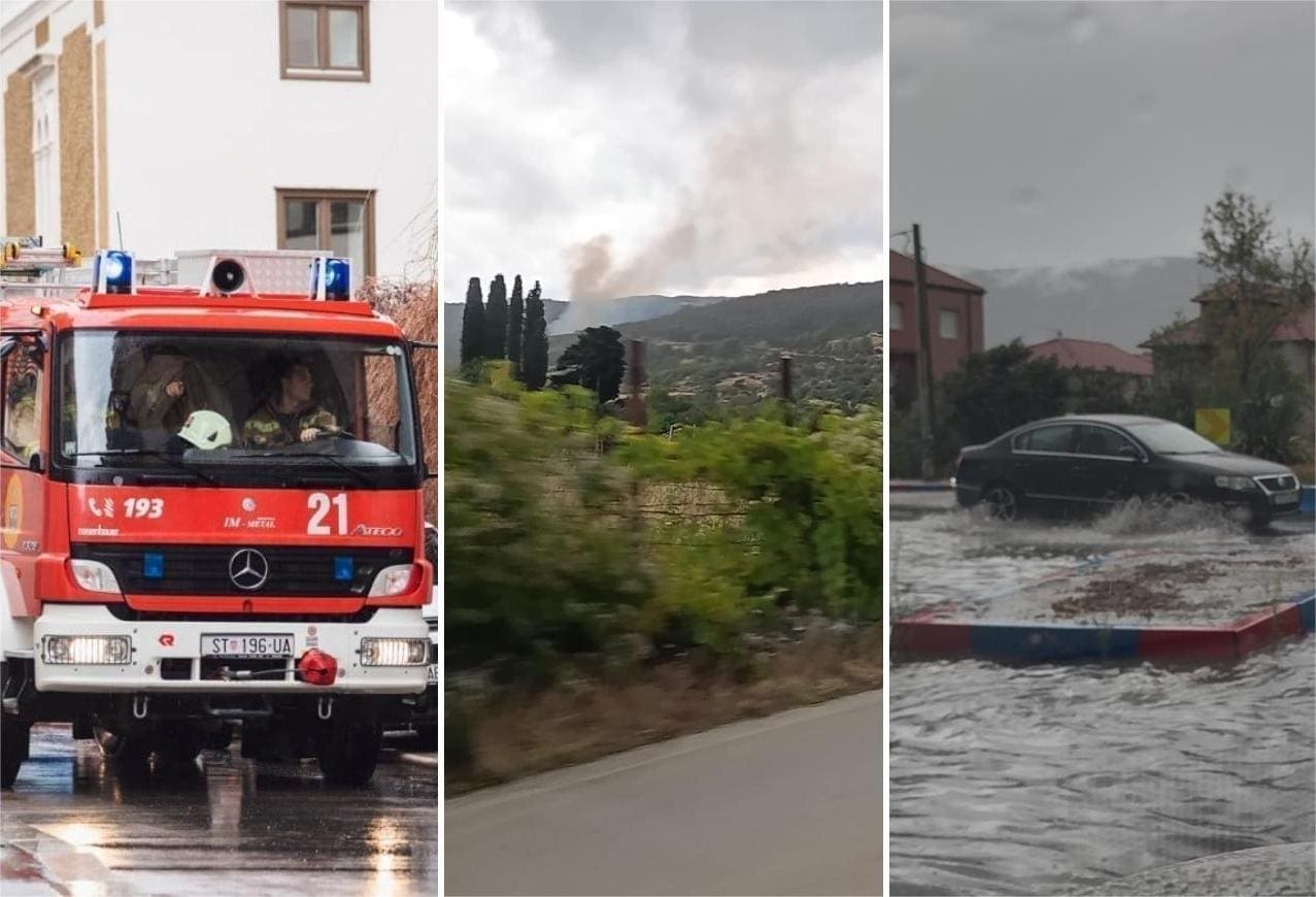 Grmljavinsko nevrijeme zahvatilo je i neke dijelove bez oborina, pri čemu su udari munja izazvali požare. Tako je iznad Dugog Rata udar munje izazvao požar na Poljičkoj kosi, a također je planulo i na Braču.