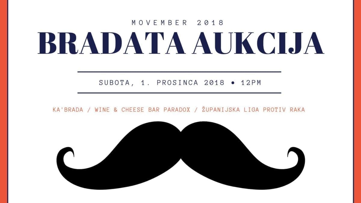 Bradata aukcija, jedinstvena humanitarna akcija, u organizaciji brijačnice ka'Brada i Wine & Cheese Bara Paradox uz podršku Županijske lige protiv raka, a s ciljem sveopćeg podizanja svijesti o raznim oblicima karcinoma, održati će se i ove godine, u subotu 1. prosinca 2018. godine s početkom u 12 sati. Ovo sada već tradicionalno humanitarno brijanje će se održati u prostoru vinskog bara Paradox, a s žiletima u rukama čekaće vas brice iz brijačnice ka'Brada Marina, Šunje, Mili, Bruno i Duje. Marko iz Paradoxa priprema zanimljiv glazbeni program, a uz selekciju craft pivi sudionike aukcije očekuju i brojna iznenađenja.