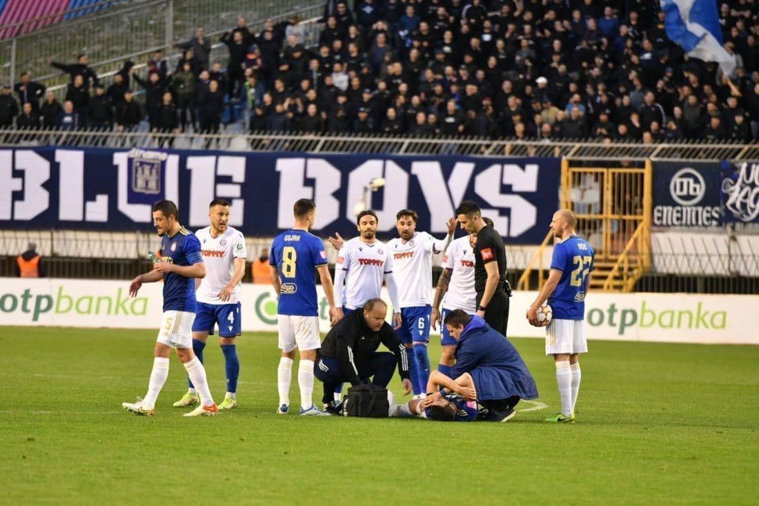 S druge je strane bilo opasno u 21. minuti, prvo je Emreli pucao pored gola, a zatim i Ristovski. Minutu kasnije nezgodno su se sudarili Melnjak i Lauritsen pa su nastavili utakmicu s povezima na glavama. U narednom je periodu još nekoliko prekršaja i sudara završilo ležanjem, dojam je da je na terenu više ranjenih nego trčećih. Melnjak je uskoro zbog ozljede napustio igru, zamijenio ga je Čolina.