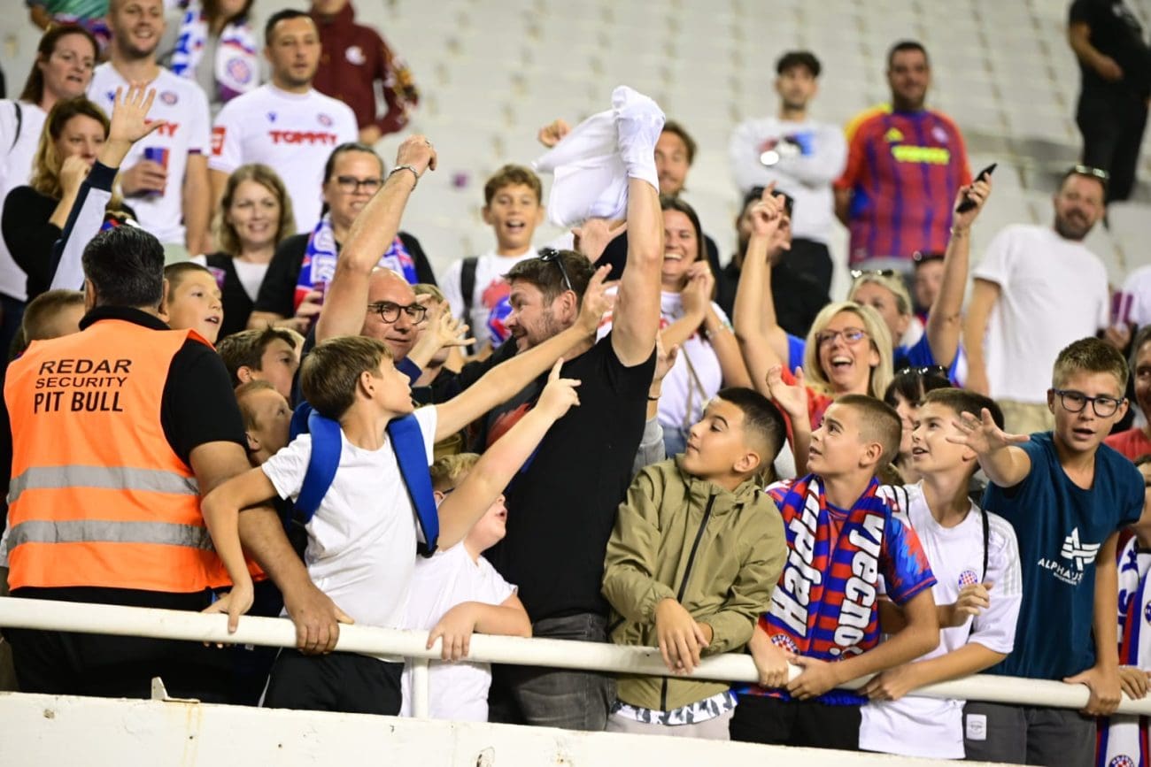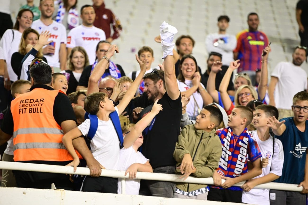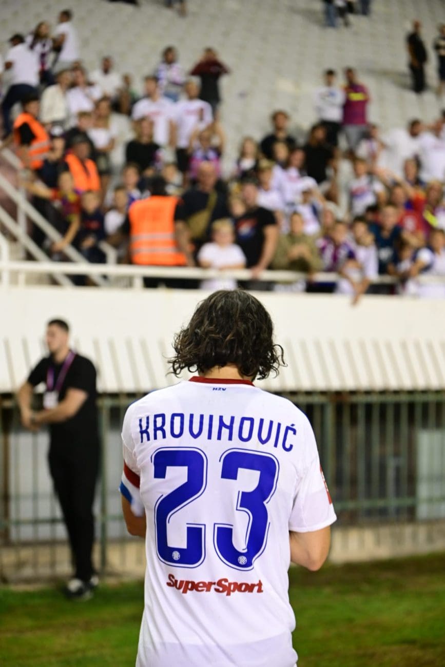 Kako to obično biva, navijači traže dresove svojih omiljenih igrača. Djeca se tome posebno raduju, a upravo današnju utakmicu po tome će pamtiti jedan mladi navijač. On je uspio doći do dresa Filipa Krovinovića.