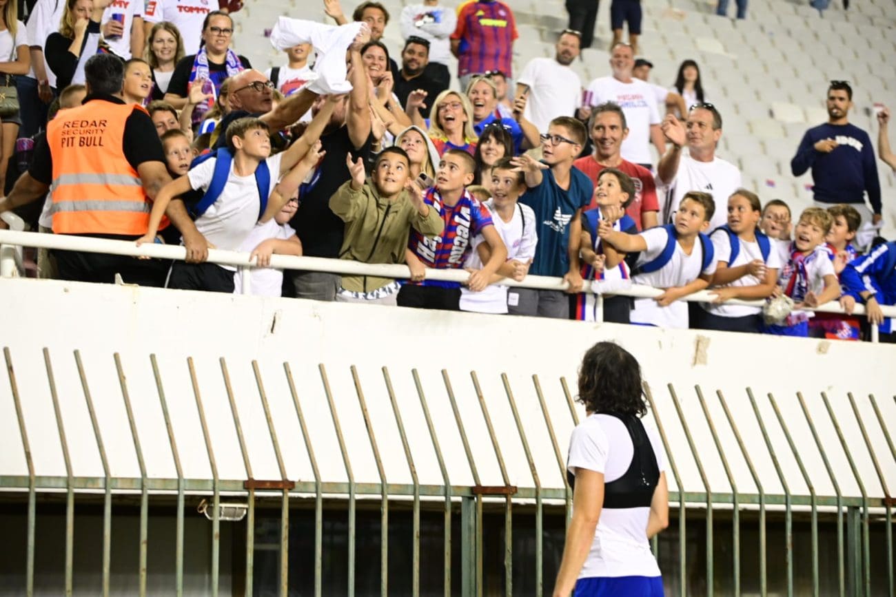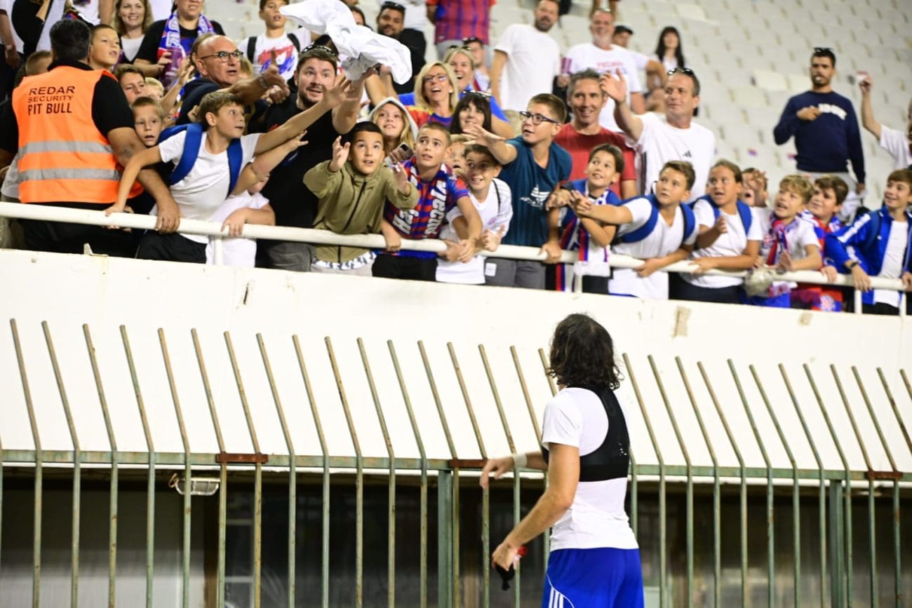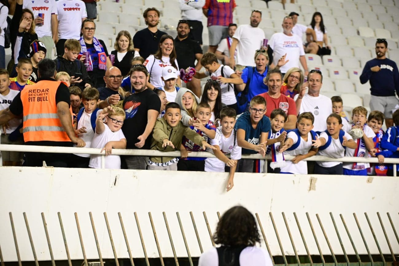 Kako to obično biva, navijači traže dresove svojih omiljenih igrača. Djeca se tome posebno raduju, a upravo današnju utakmicu po tome će pamtiti jedan mladi navijač. On je uspio doći do dresa Filipa Krovinovića.