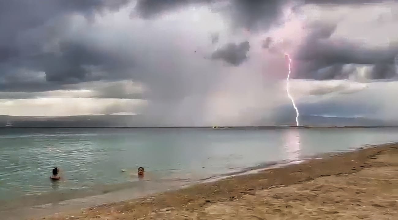Unatoč tim upozorenjima, dvije djevojke odlučile su se okupati na omiškoj plaži usred grmljavinskog nevremena.