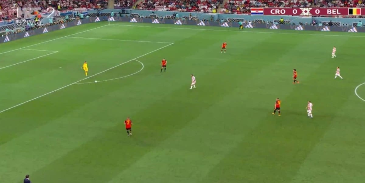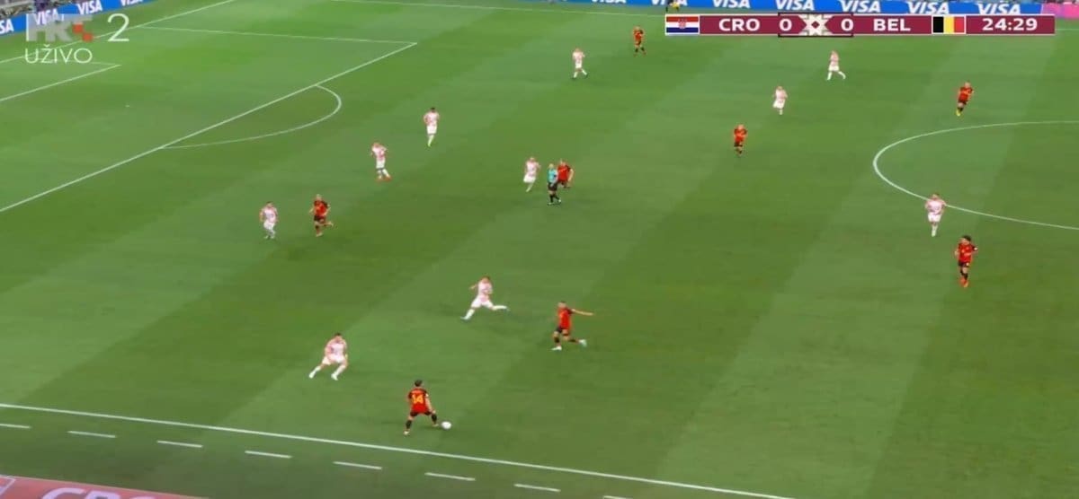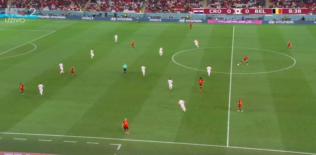 51' Hrvatska igra visoki presing, u kontri De Bruyne iz okreta puca preko gola.