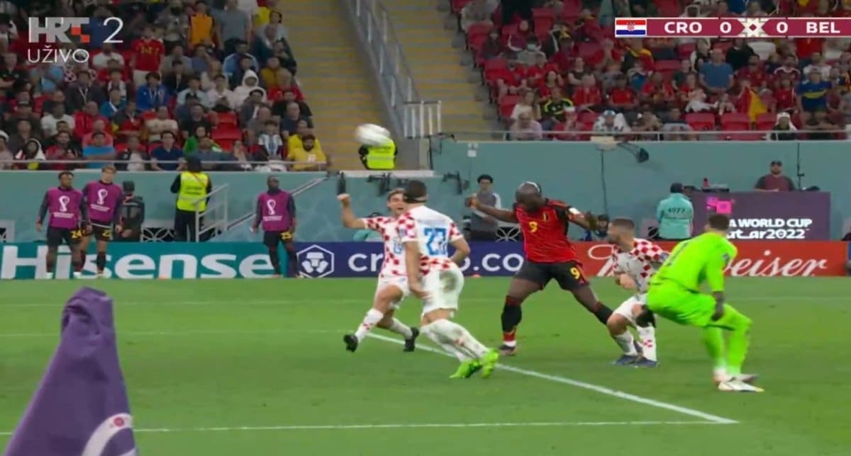 54' Livaja do Brozovića koji puca, ali vratar Belgije na mjestu.