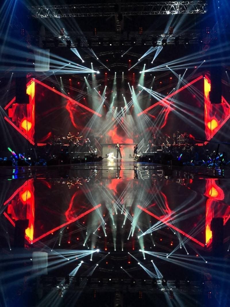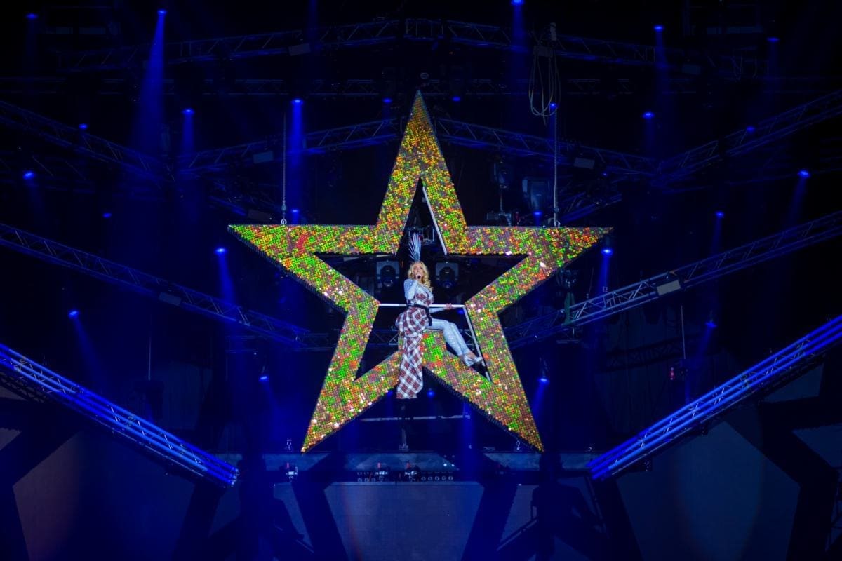 Na početku koncerta spuštala se s krova Arene na velikoj plamtećoj zlatnoj zvijezdi praćena ovacijama obožavatelja, a kad se s vrha dvorene spustila na binu, među više od stotinu pratećih glazbenika i plesača, zapalila je Beograd.
