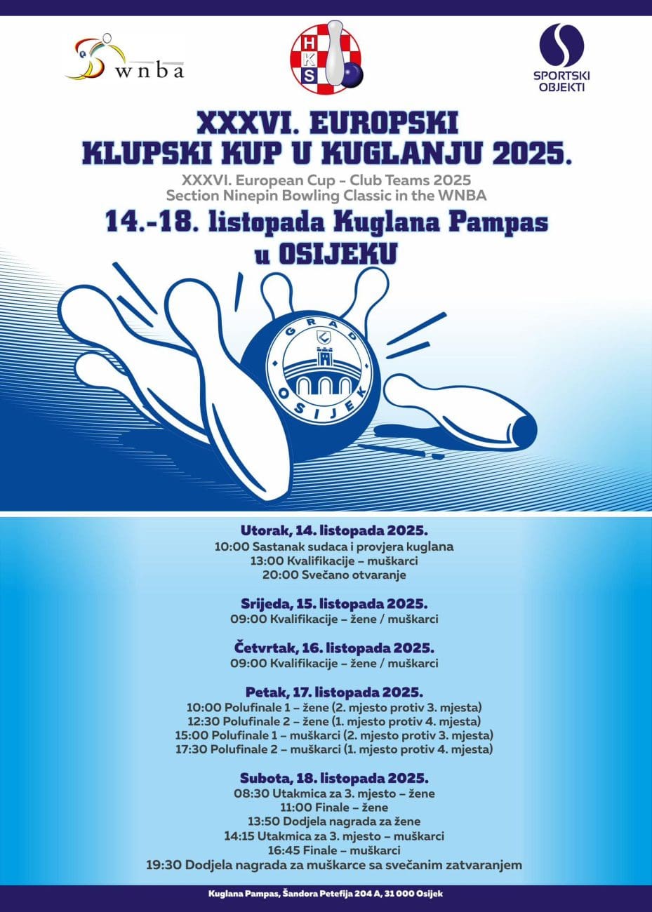 U Osijeku je počeo XXXVI. Europski kup u kuglanju 2025., koji je ujedno i kvalifikacijsko natjecanje za plasman u Ligu prvaka.