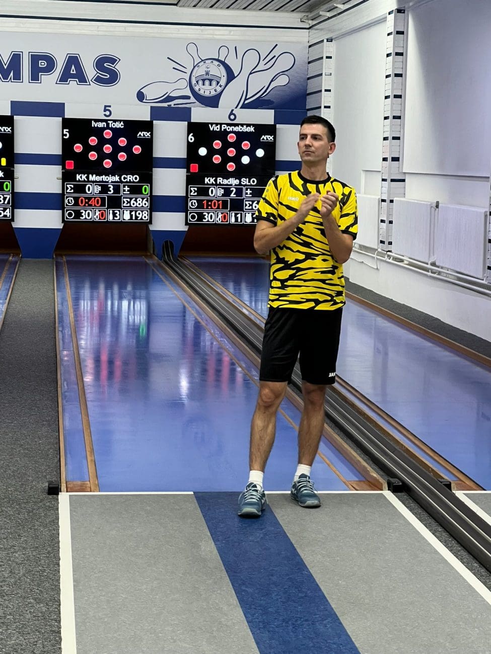 Nakon prvog dana najviše srušenih čunjeva ima hrvatski reprezentativac Ivan Totić iz Mertojaka. Bila je to gotovo savršena igra – po setovima 161, 164, 155 i 198, samo dva manje od magičnih 200. Na kraju ukupno impresivnih 686, čak 46 više od zasad drugoplasiranog Mateja Tadića iz Crvene zvezde (SRB).