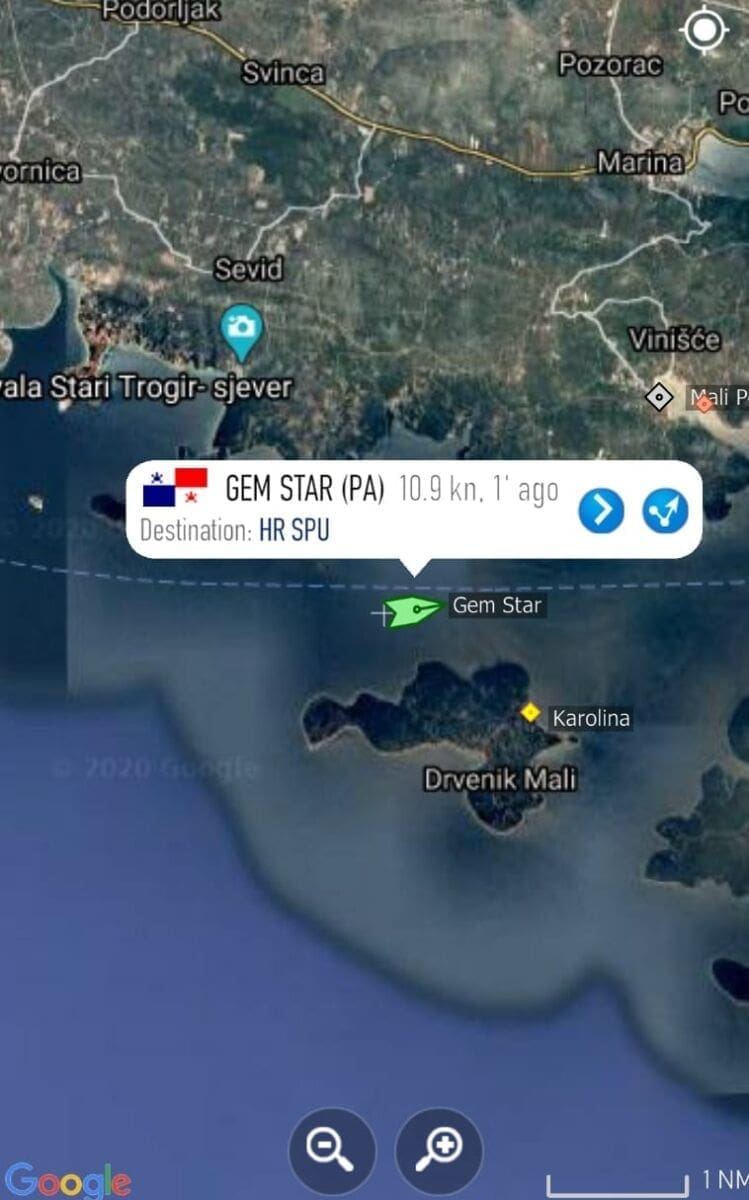 Prema podacima MarineTraffica, brod se sredinom dana nalazi u blizini Drvenika.