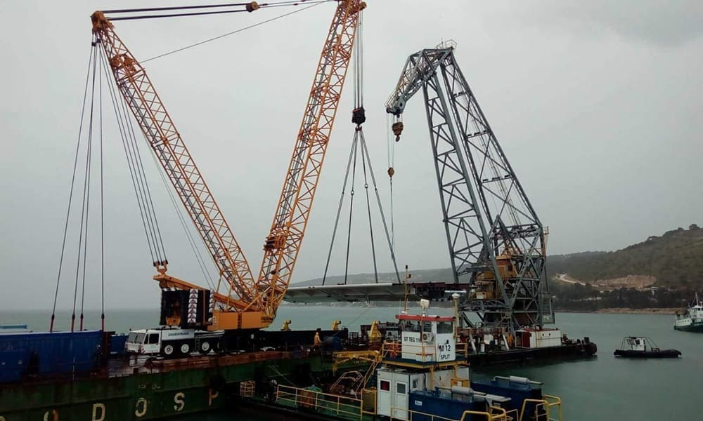 Jutros je iz Brodosplita plovnom dizalicom Marjanka posljednji rasponski sklop prevezen na gradilište Čiovskog mosta, čime su od danas u popodnevnim satima spojeni Trogir i Čiovo mostom.