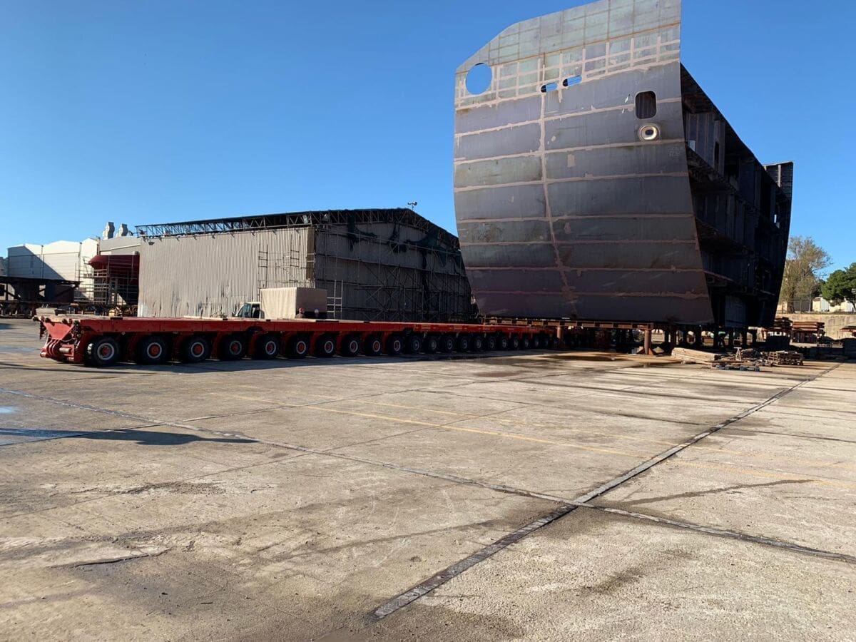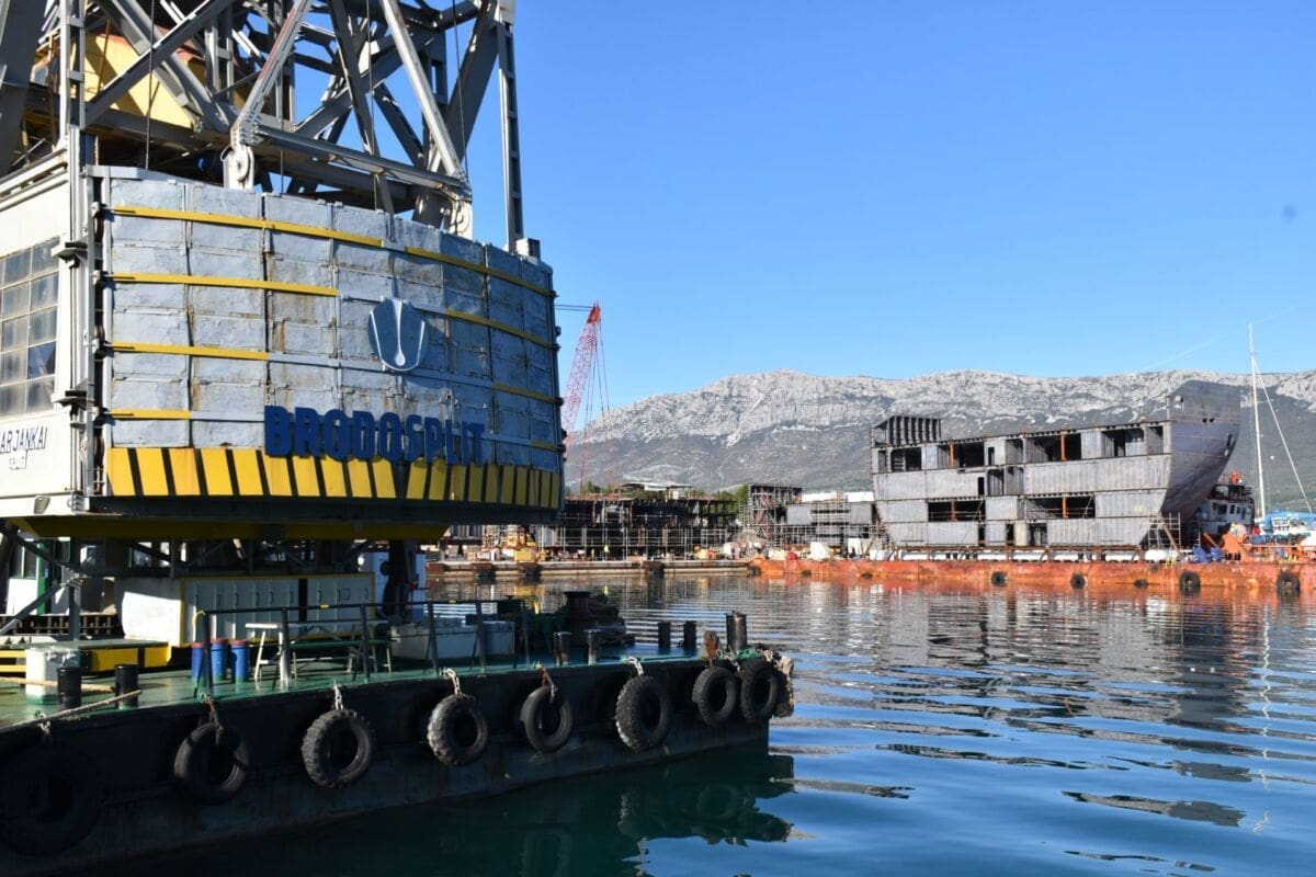 - Sekcija je uska, a visoka s težištem na 7 metara, pa je zahtjevni ukrcaj obavljen s 2 samohodna modularna transportera velike nosivosti (SPMT), svaki pojedinačno s 26 osovina što je ukupno 36 metara dug jedan transporter, čime smo sigurno ponijeli epitet rekordera ukrcaja i najvećeg prijevoza teških tereta u Hrvatskoj- ponosno je istaknuo Milan Simić, voditelj transporta u Brodosplitu.