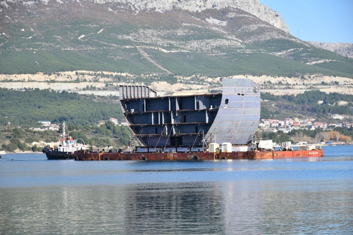 Riječ je o sekciji pramčanog dijela brodskog trupa visine 12 m, širine 40 m i težine 480 tona opremljene elementima za vez i sidrenje.