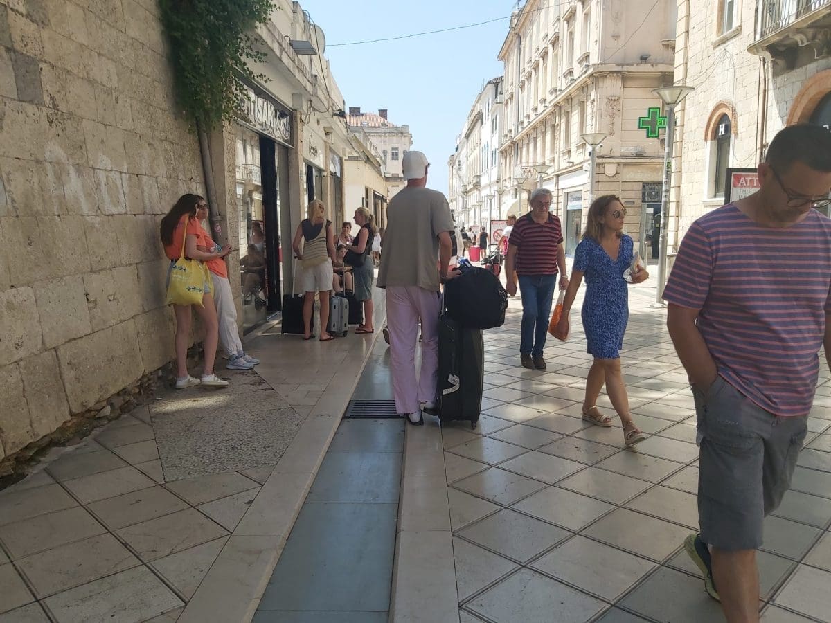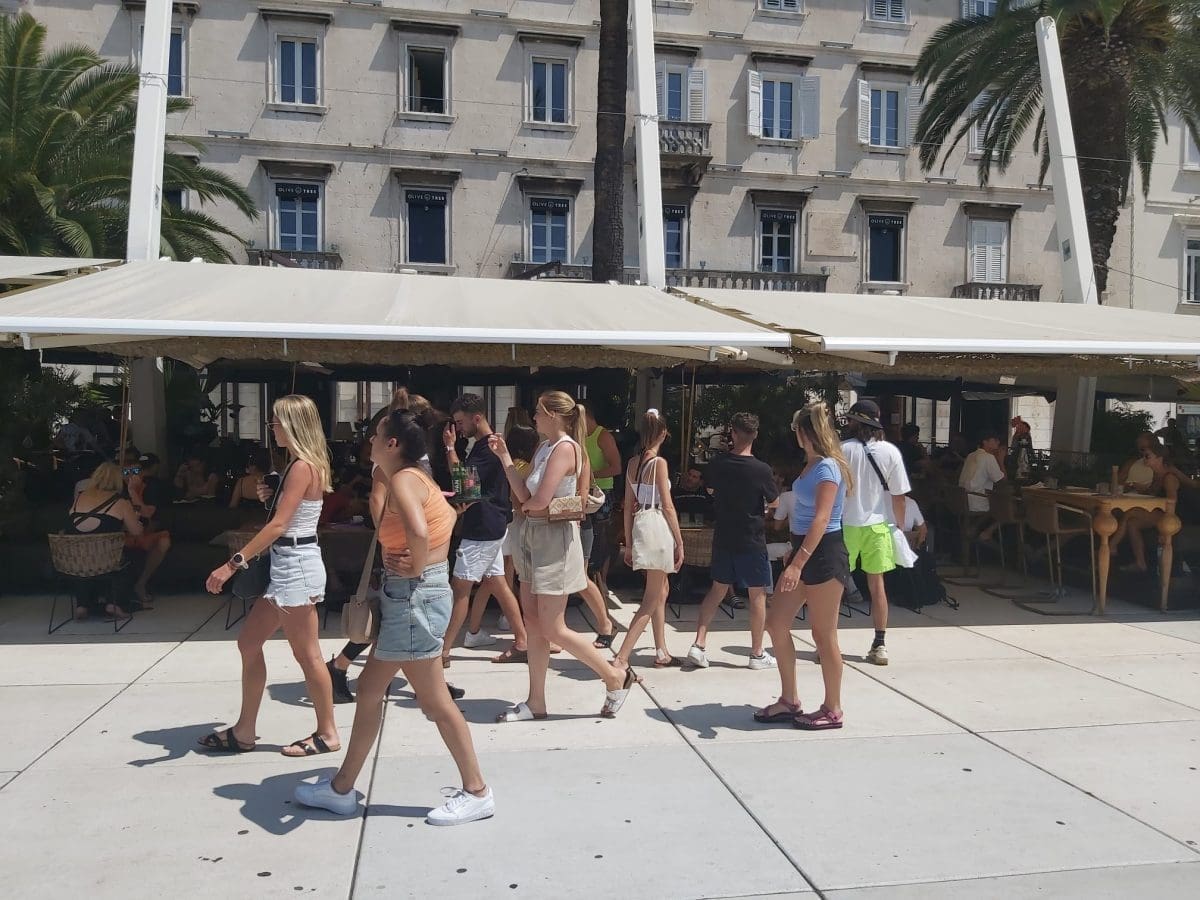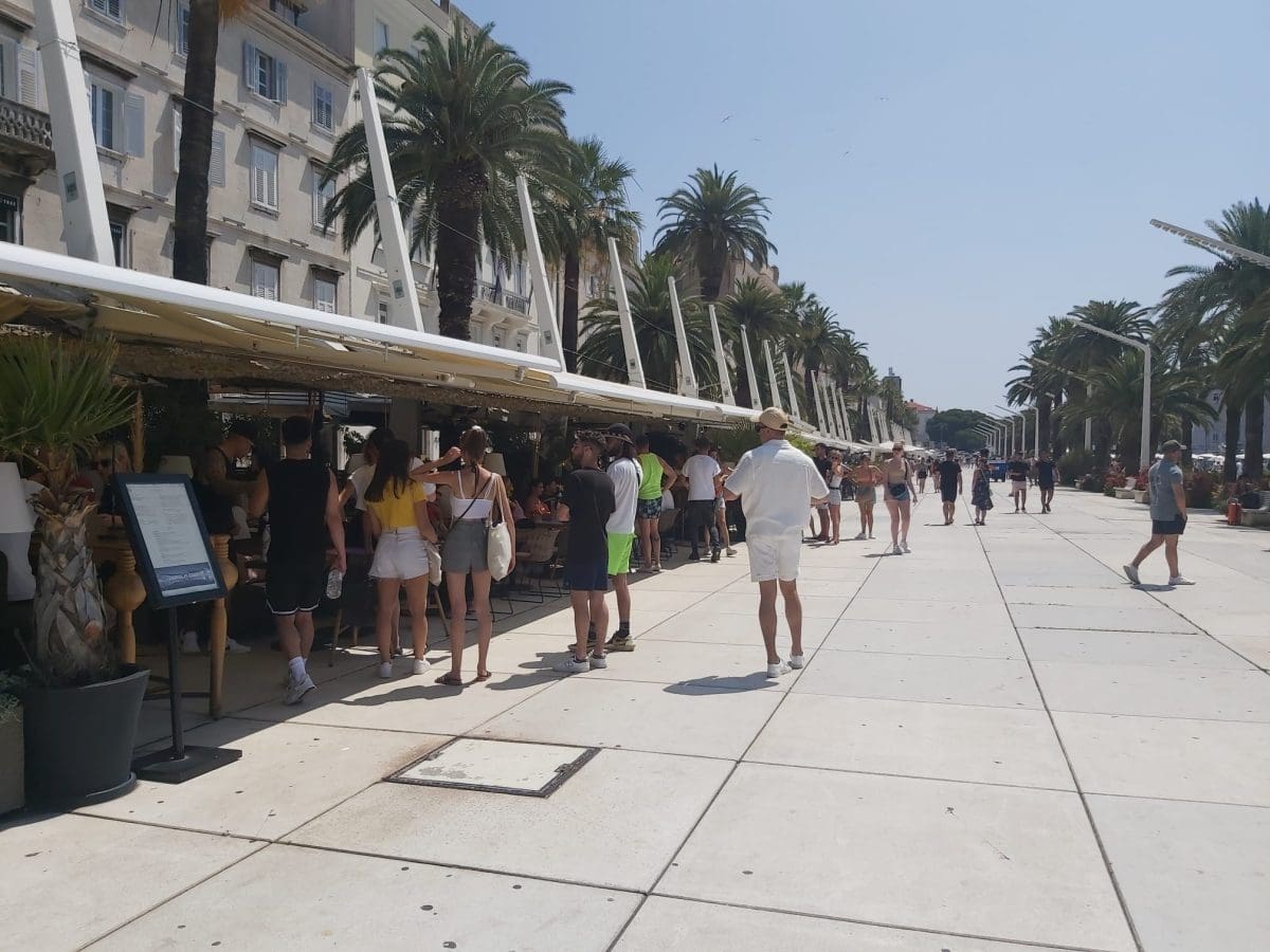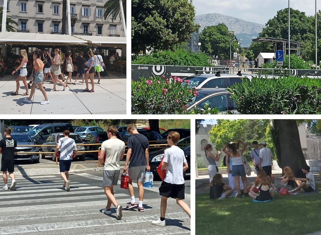 Štekati na rivi redom su puni stranaca. I među prolaznicima su dominanstno strani i mladi posjetitelji koji su mahom stigli zbog Ultre. Glavni modni dodatak jesu koferi i prtljaga što znači da je većina odabrala stići u Split tik prije početaka festivala. Nosevi su im "u mobitelima" dok zbunjeno tragaju za smještajem.