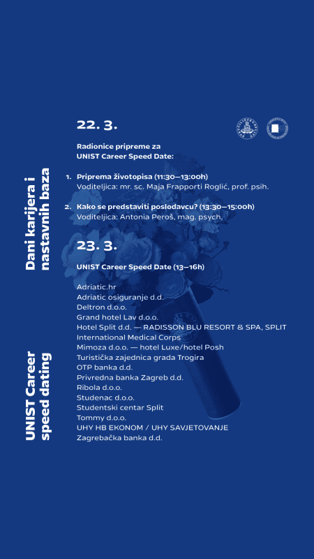 UNIST Career Speed Dating održat će se u srijedu, 23. ožujka s početkom u 13 sati na lokaciji Spinit inkubator Sveučilišta u Splitu, Matoševa 56.
