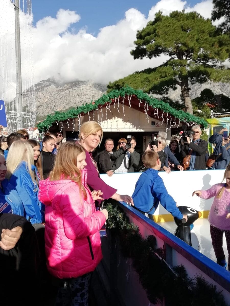 Nakon druženja s građanima na glavnom trgu u Imotskom i prisustvovanju na misi u crkvi Franje Asiškog, predsjednica je stigla na Makarsku rivu. U društvu makarskog gradonačelnika Jure Brkana, Grabar Kitarović je pozdravila građane s kojima je rado pozirala i za fotografije.