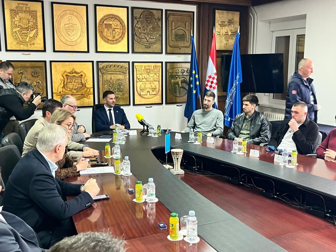 Uz gradonačelnika, prijemu u Gradskoj vijećnici nazočili su zamjenik gradonačelnika Ivo Bilić, pročelnik Odjela za sport i politike mladih Igor Maretić te pročelnica Kabineta gradonačelnika Ružica Đonlić, koja je moderirala događaj.