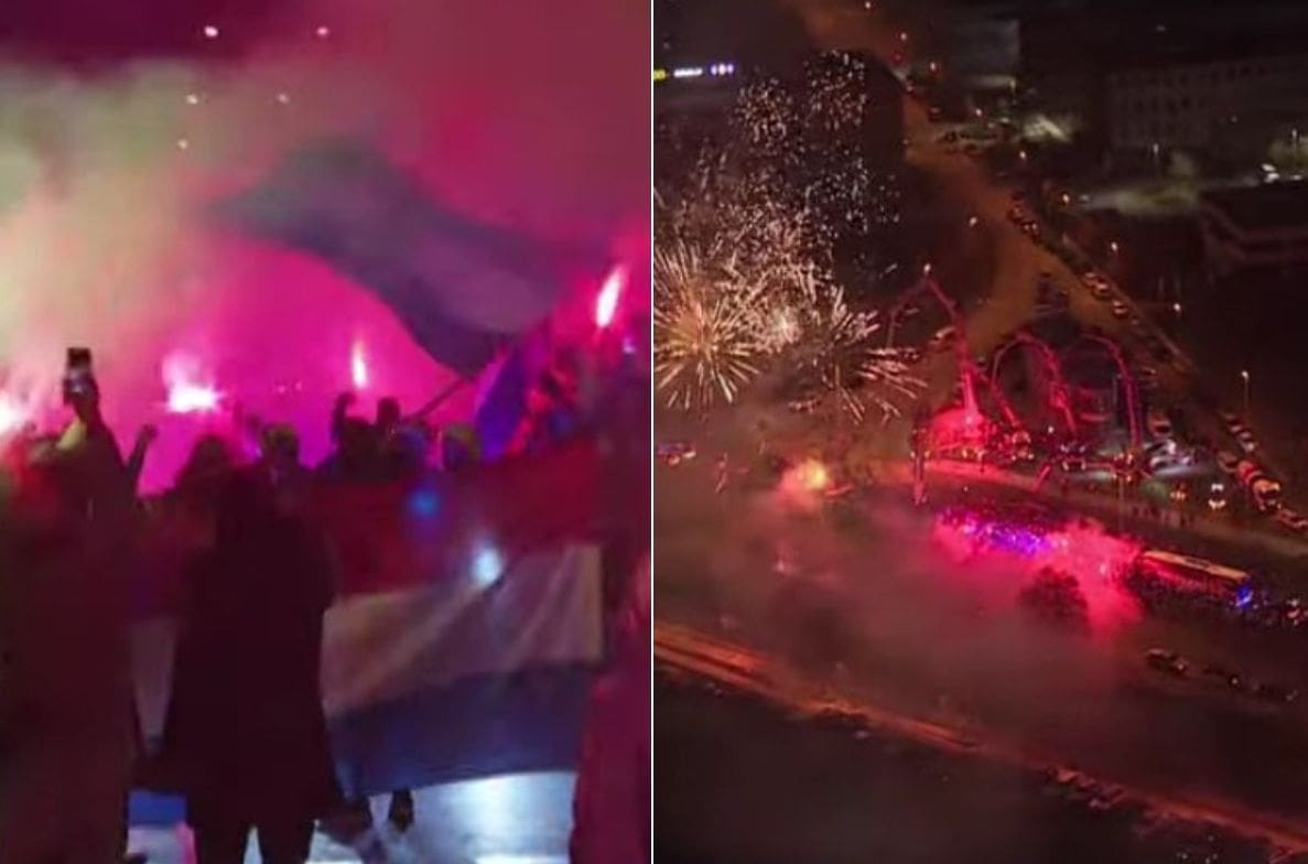 Duž rute vatrene su dočekali navijači. Pjeva se, slavi, a upriličili su im i vatromet te bakljadu.