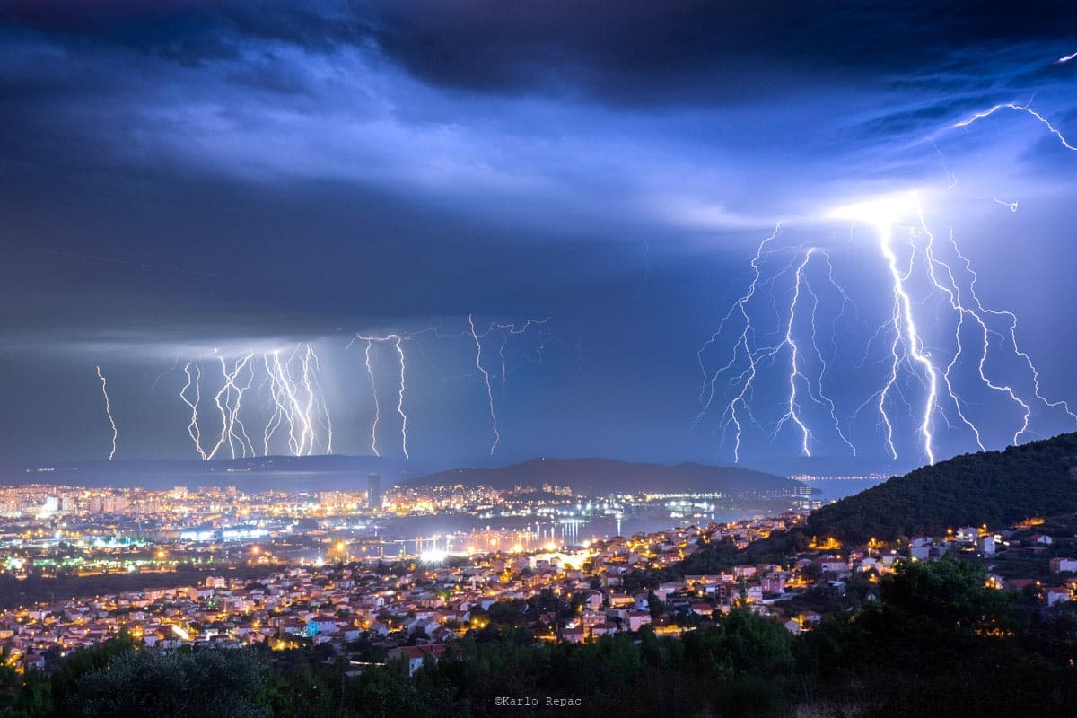 Mladi splitski fotograf amater i lovac na oluje, Karlo Repac, snimio je prekrasnu fotografiju Splita, Solina i Kaštelanskog zaljeva za vrijeme izraženog grmljavinskog nevremena koje je ovo područje zahvatilo u noći s ponedjeljka na utorak.