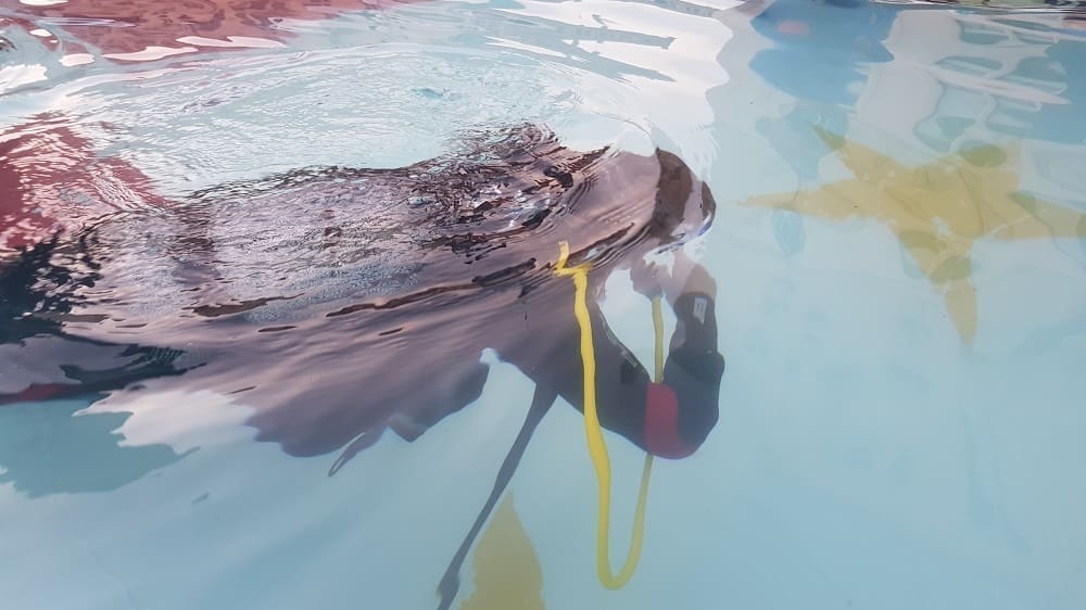 Nakon osnovne poduke o ronjenju i ronilačkog opremi, zaronom u bazen projekta Pogled u plavo posjetitelji će imati priliku razgledavati podvodnu izložbu fotografija poznatog hrvatskog podvodnog fotografa, Marjana Radovića koja se nalazi na unutarnjim stranicama bazena, prikazuje ljepote hrvatskog podmorja te pridonosi stvarnom doživljaju dubine.